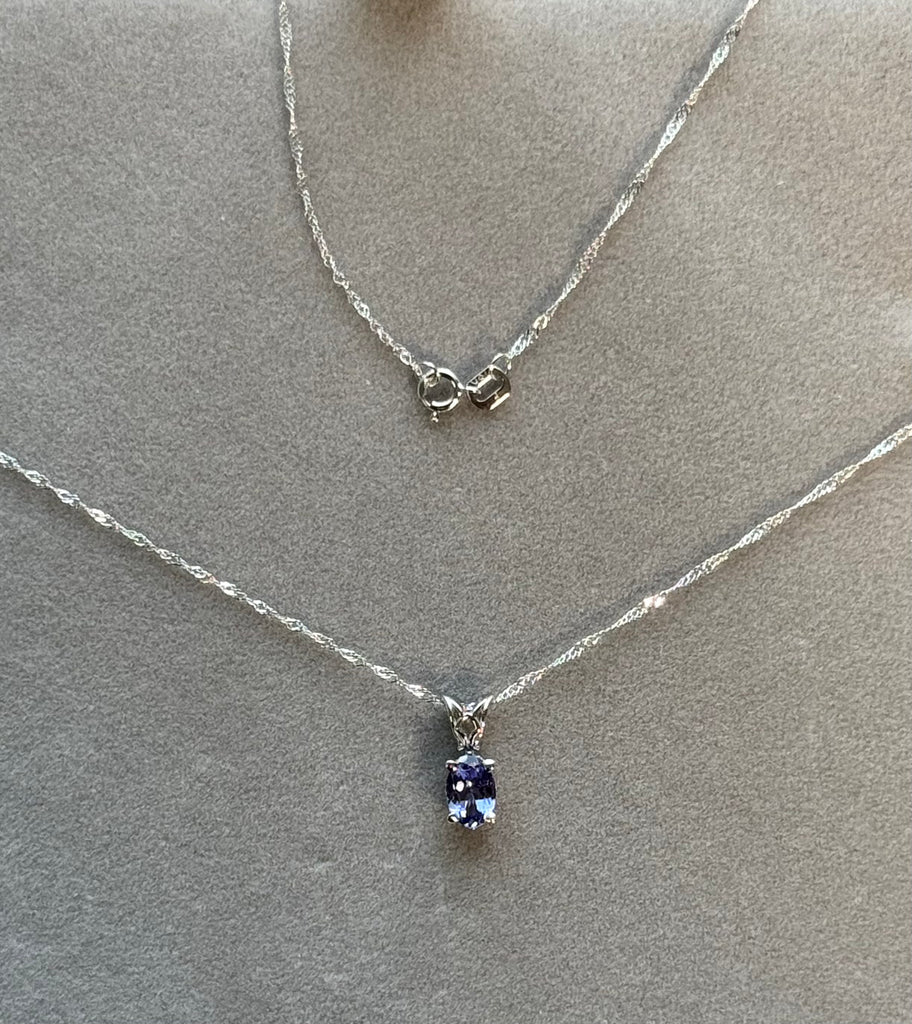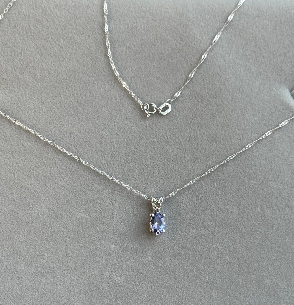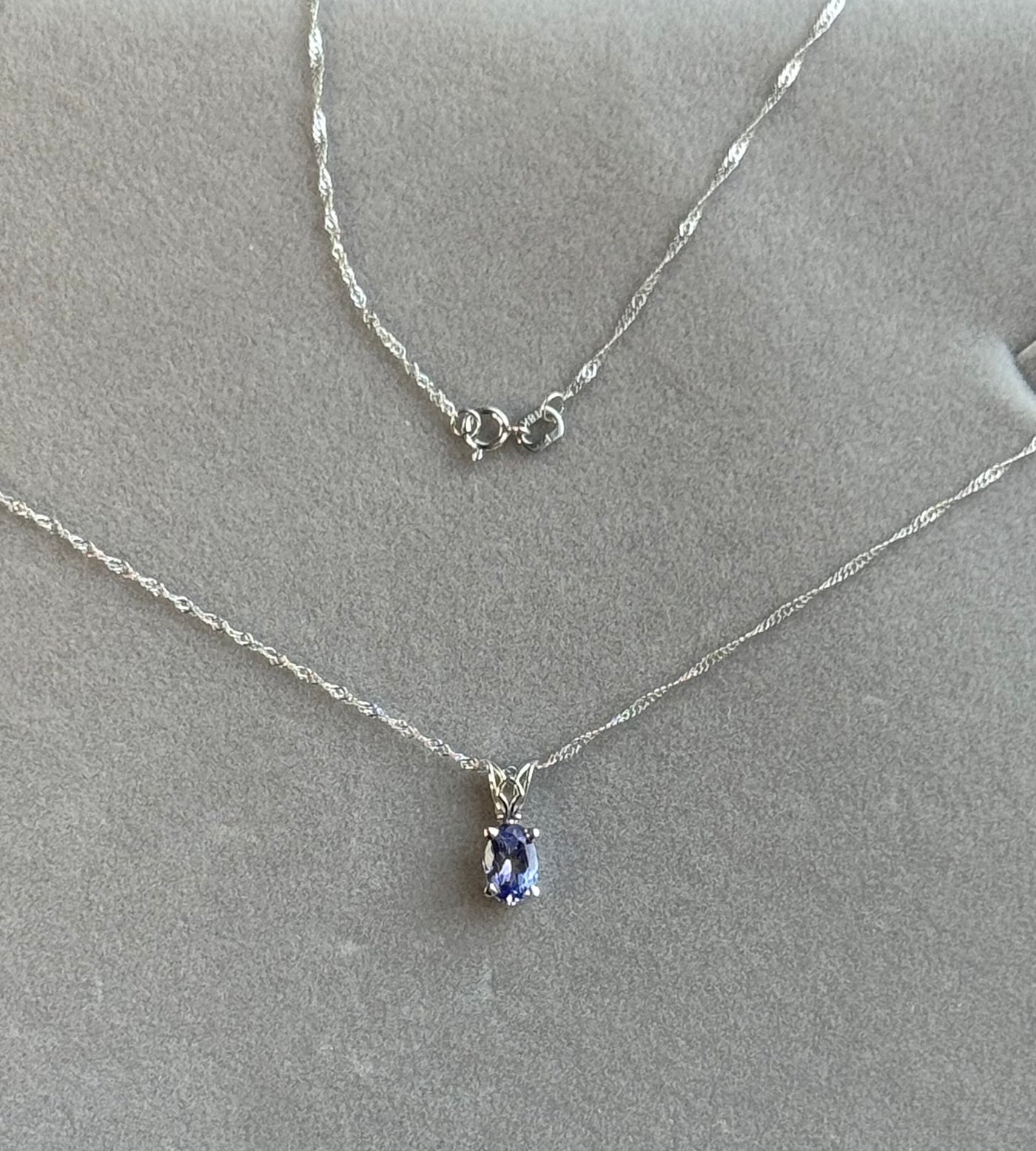 SEO keywords woven in: tanzanite pendant, platinum tanzanite necklace, oval tanzanite, AA tanzanite, solitaire pendant, December birthstone necklace, 18k white gold chain, fine jewelry gift, platinum pendant.