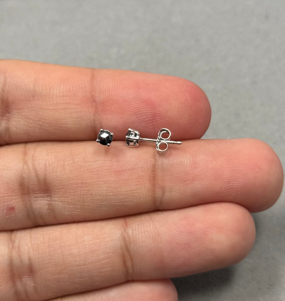 Rose Cut Black Diamond Stud Earrings in Platinum for Women | 0.23–0.30 Ct AA Round 2.5–3.0 mm Solitaire Studs