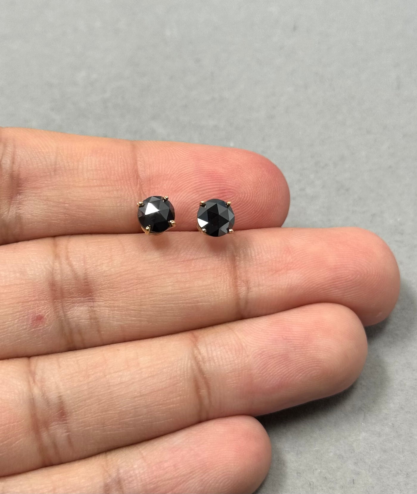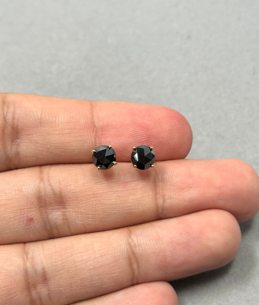 Round Rose Cut Black Diamond Stud Earrings 18K Yellow Gold 1.95–2.44 Cts EGL USA Certified women