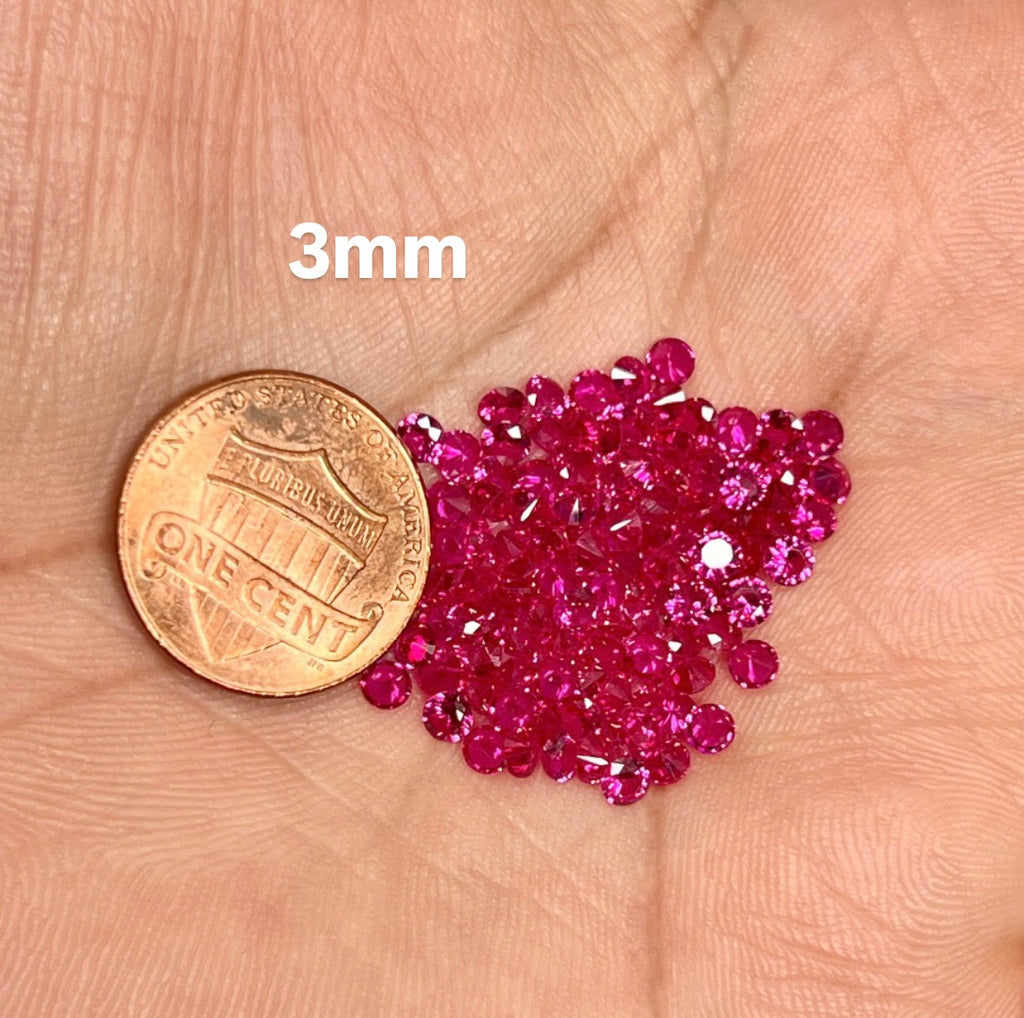 Synthetic Pink Ruby Round Diamond Cut Parcels 100 Pcs 1mm–3mm Loose Gemstones