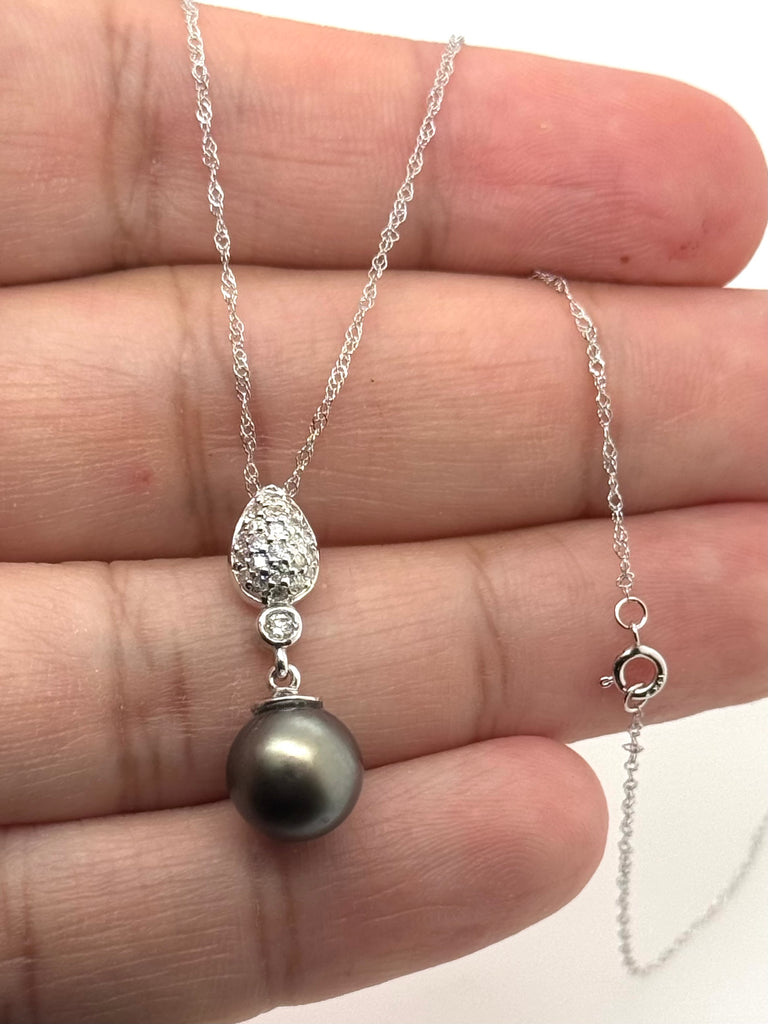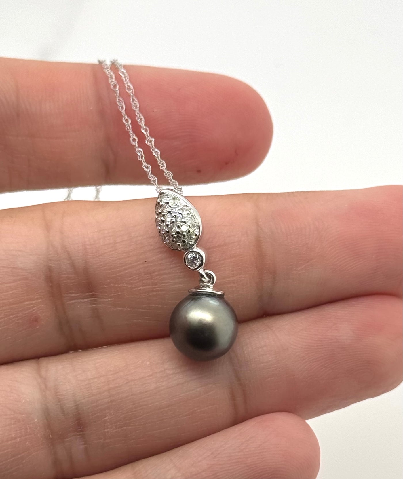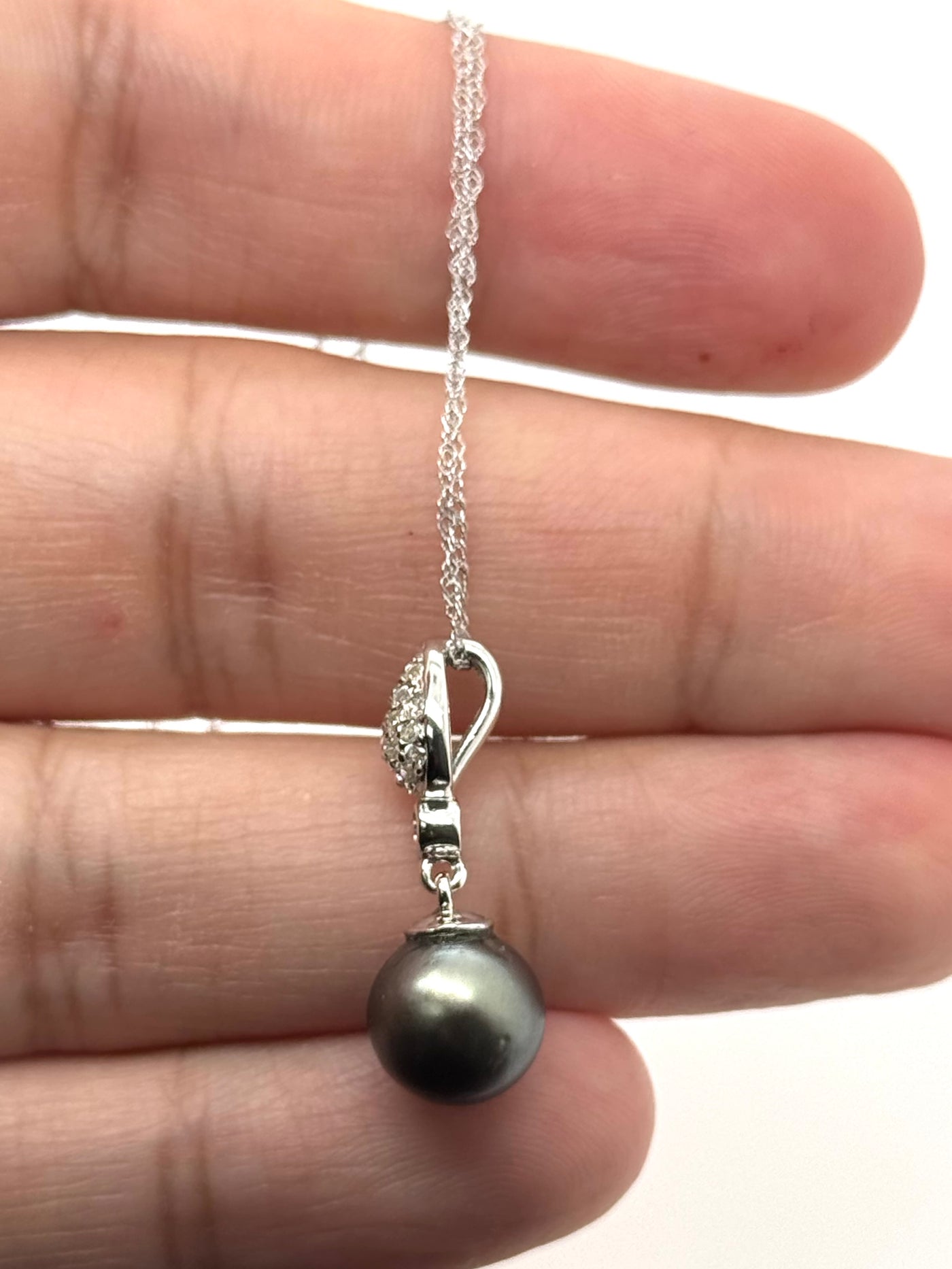Tahitian Pearl Diamond Pendant | 14K White Gold Necklace — Luxury Bridal Gift for Her