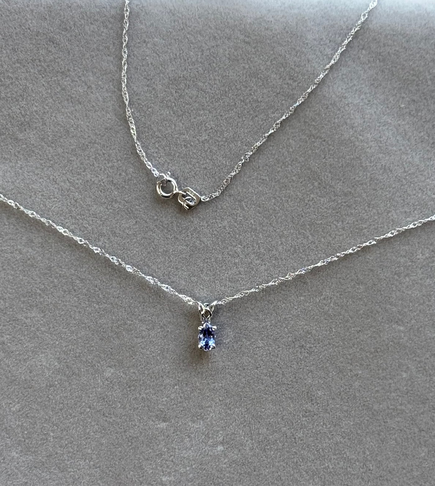 Tanzanite Oval Solitaire Pendant in Platinum, AA 5x3mm, 0.21–0.29ct, Prong Set, 18" 18K White Gold Singapore Chain, Elegant Gift Necklace