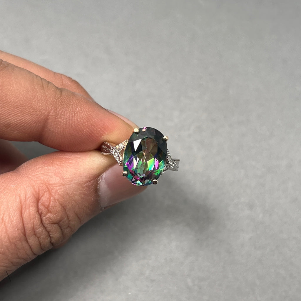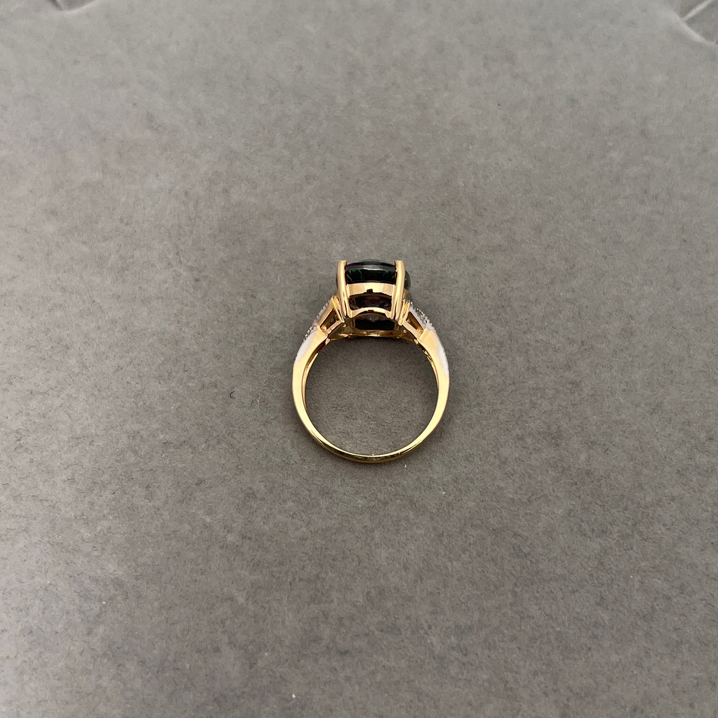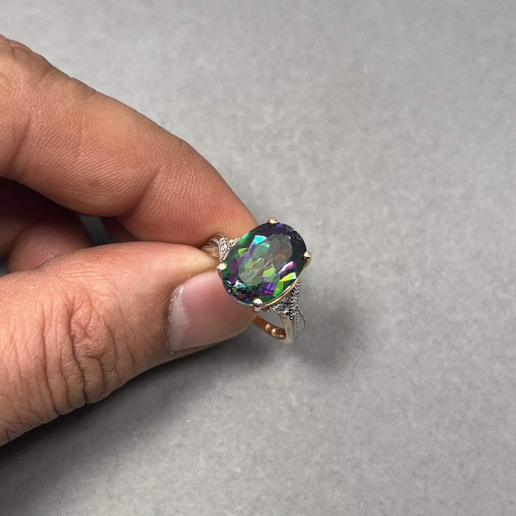 0.01 Ct Diamond & 6.24 Cts Mystic Fire Topaz Ring in 14K Yellow Gold | AAA Oval Topaz Solitaire Ring, Statement Jewelry Size 7.5