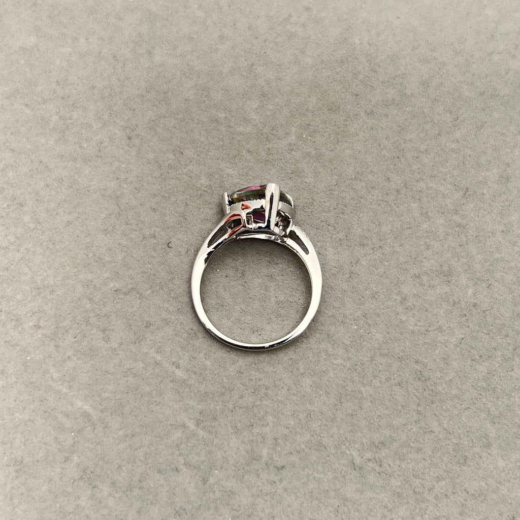 0.02 Ct Diamond & 3.37–4.66 Cts AAA Mystic Fire Topaz Ring in 14K White Gold | Elegant Solitaire Statement Ring for Women Size 6.5