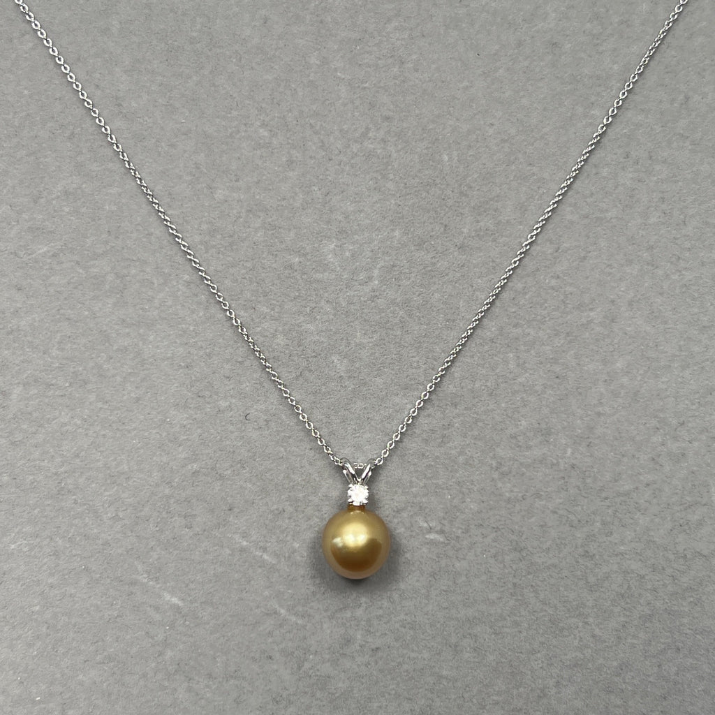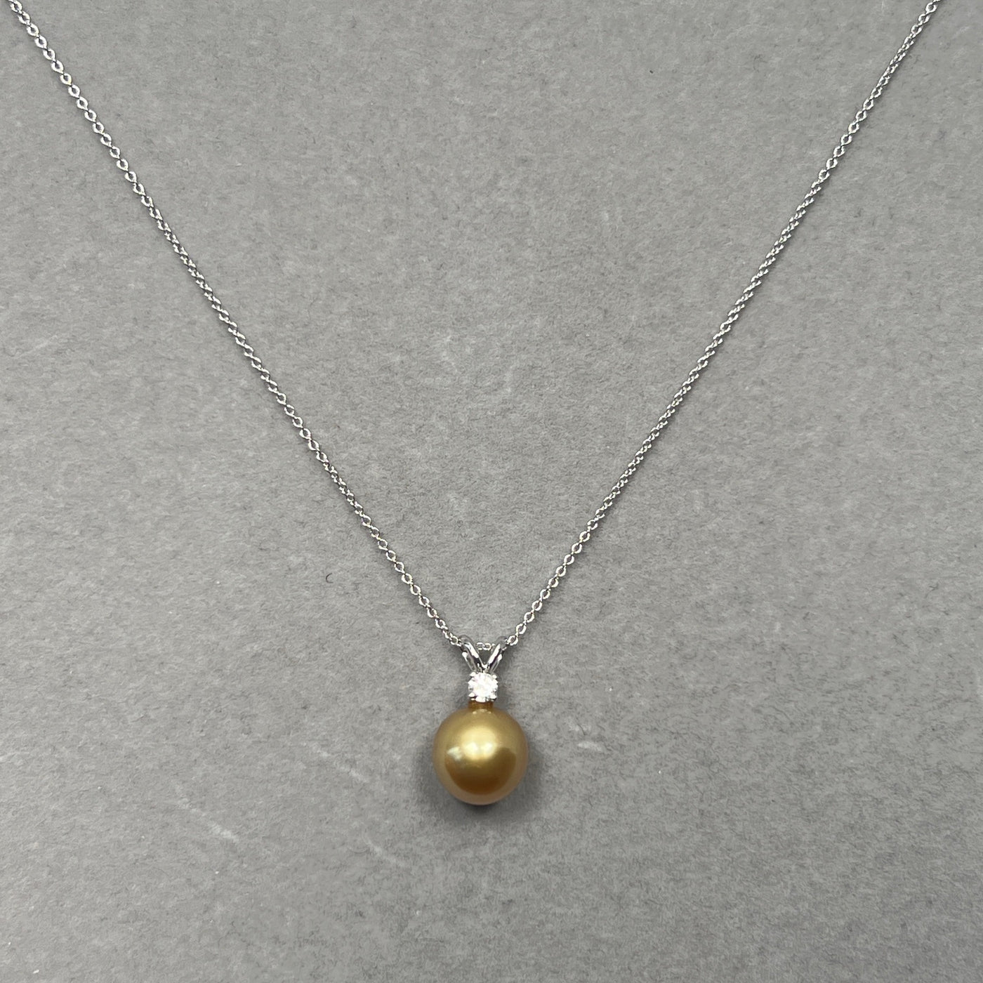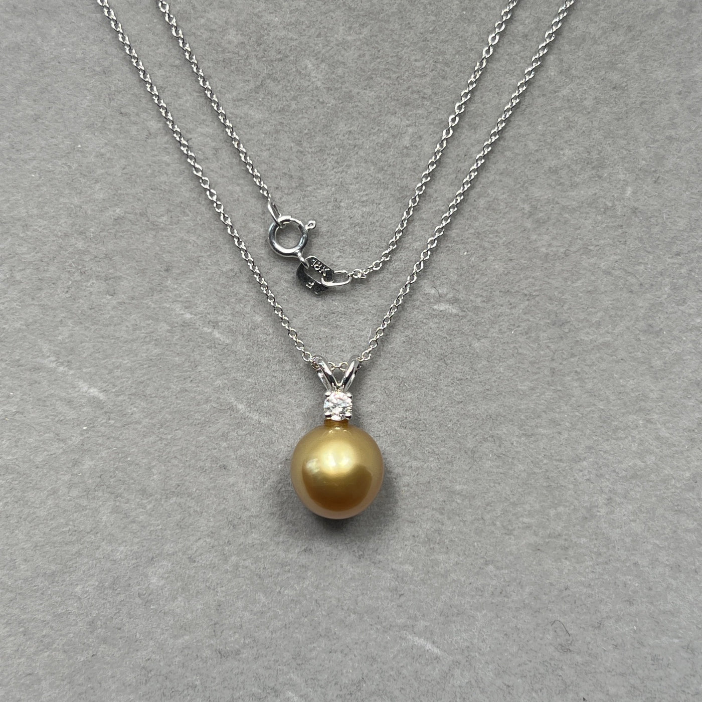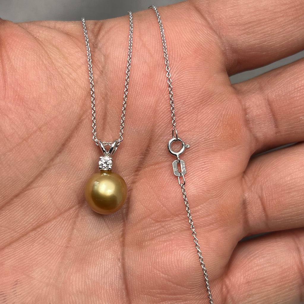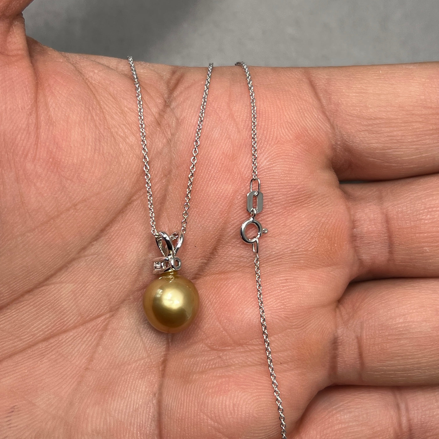 0.10 Ct Diamond & 9.5–9.75 mm Golden South Sea Pearl Pendant in 18K White Gold | Elegant Pearl Necklace, Luxury Jewelry for Women
