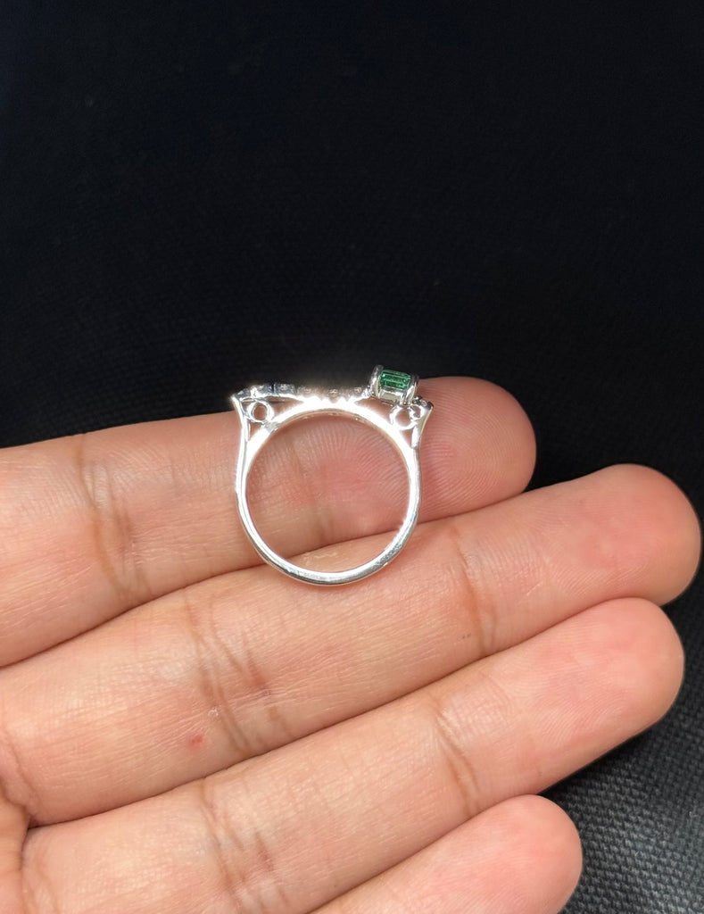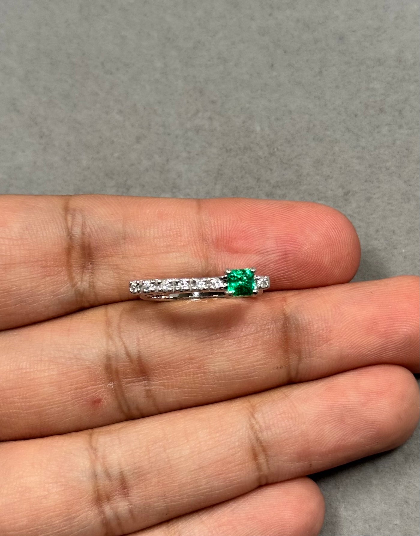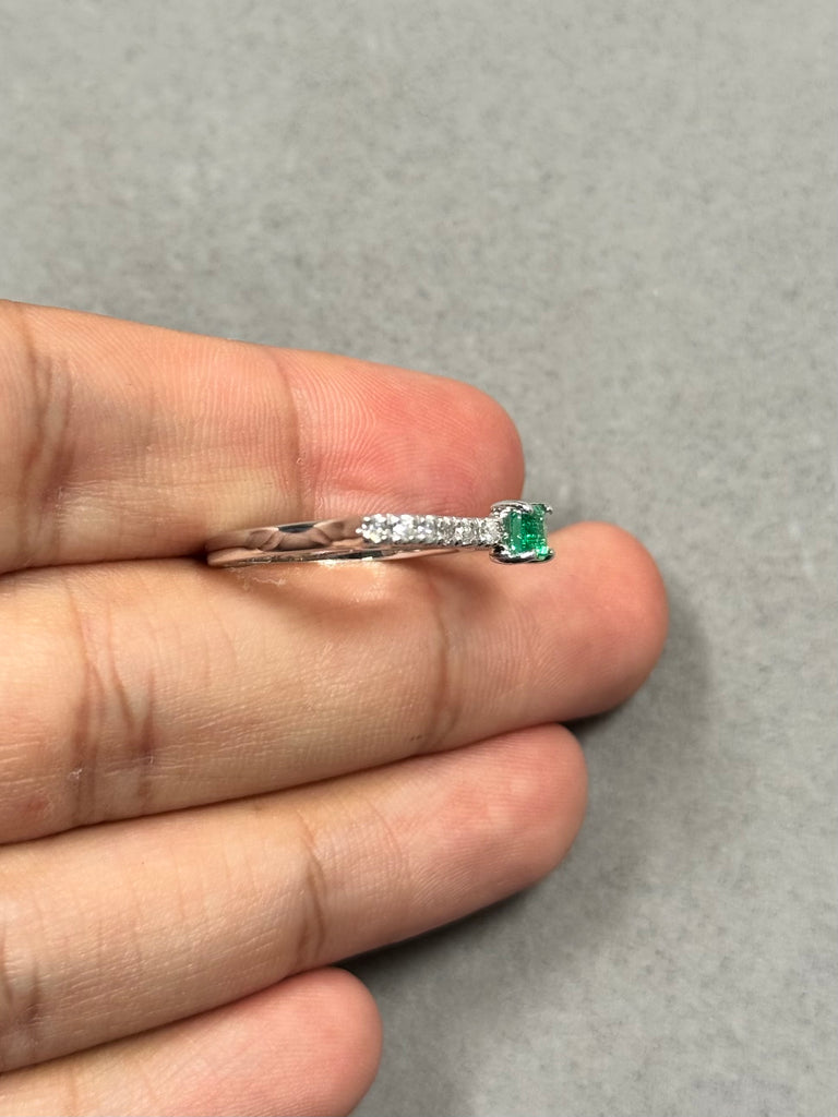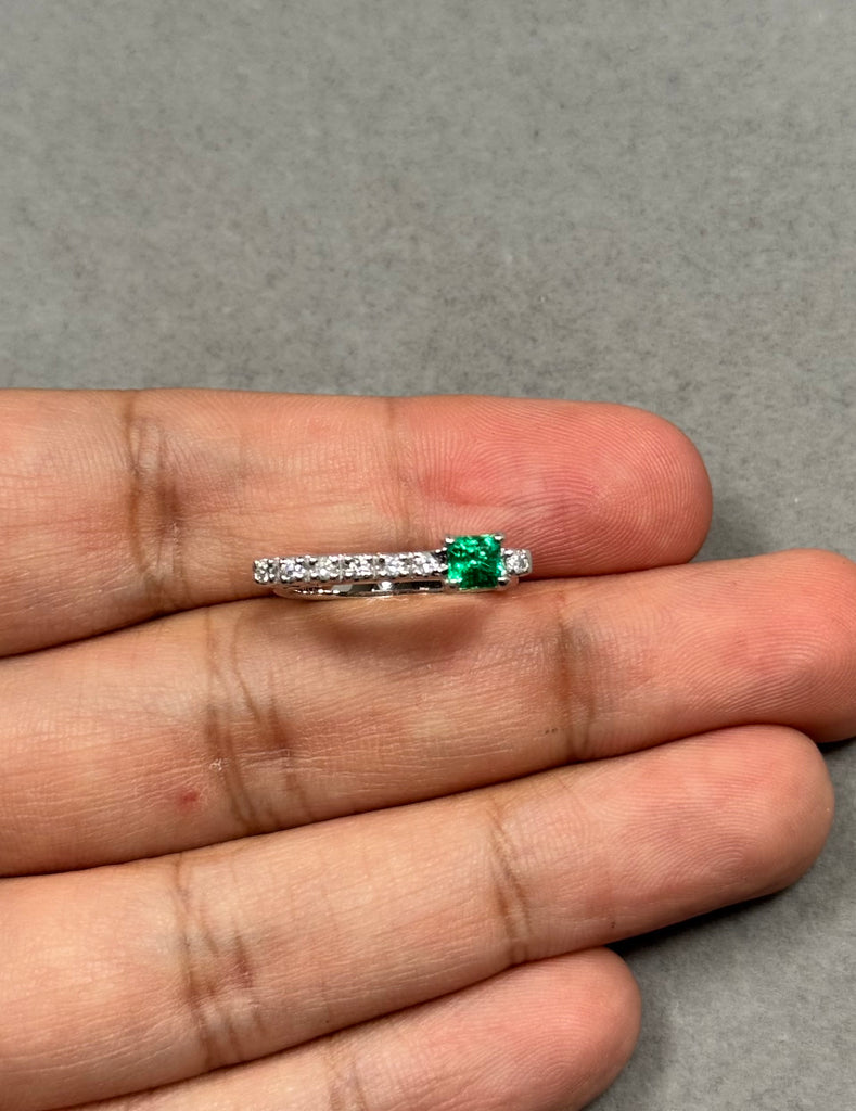 0.15 Ct Diamond & 0.35 Ct AA Natural Emerald Ring in 14K White Gold