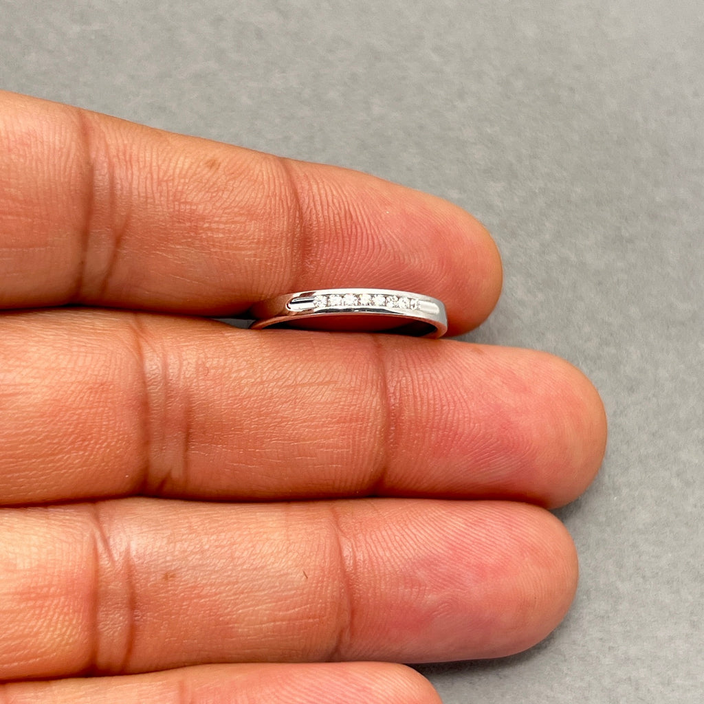 Celebrate everlasting love with this 0.18 Ct Round Diamond Wedding Band, elegantly channel set in 18K white gold with a graceful open-end design. The band features approximately nine VS2 clarity diamonds, radiating unmatched brilliance and timeless sophistication.