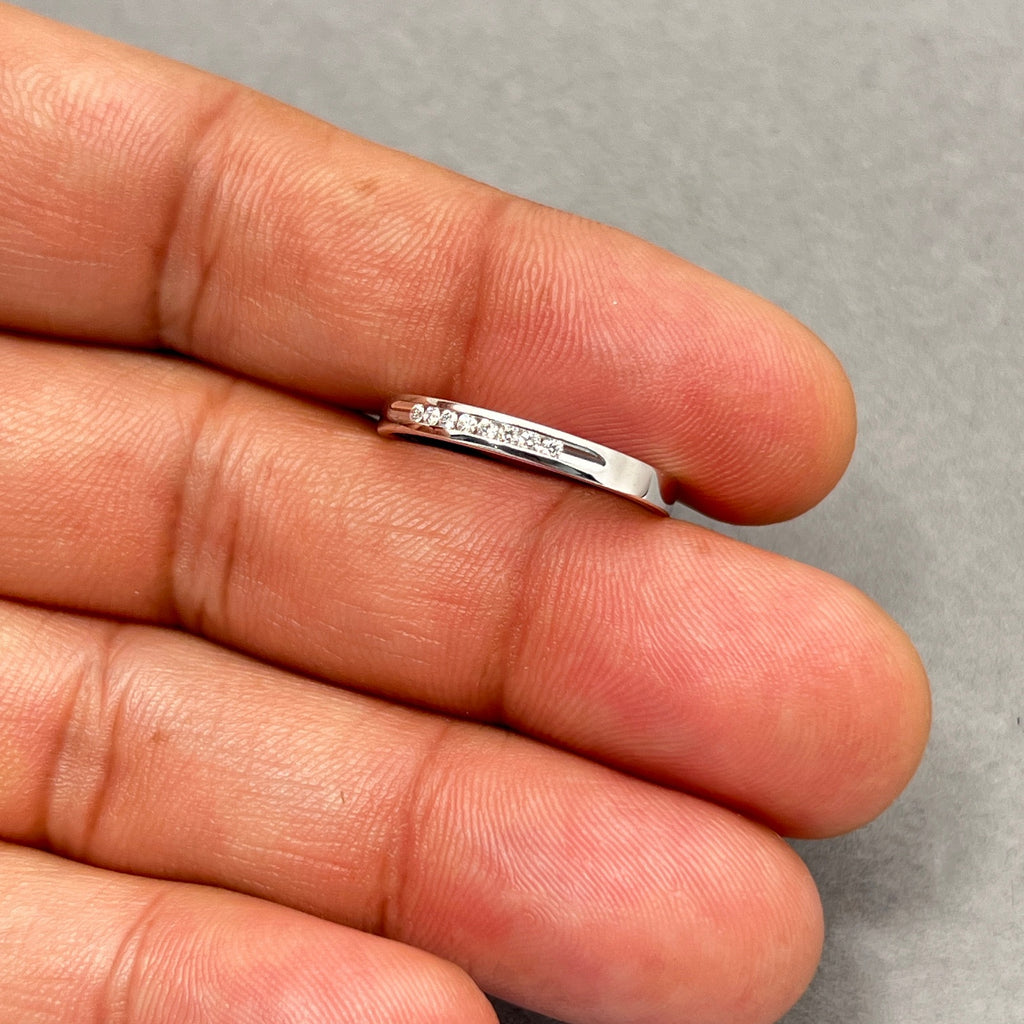 0.18 Ct VS2 Diamond Wedding Band | Round Channel Set Open Ends Ring | 18K White Gold Fine Jewelry | Bridal & Anniversary Gift
