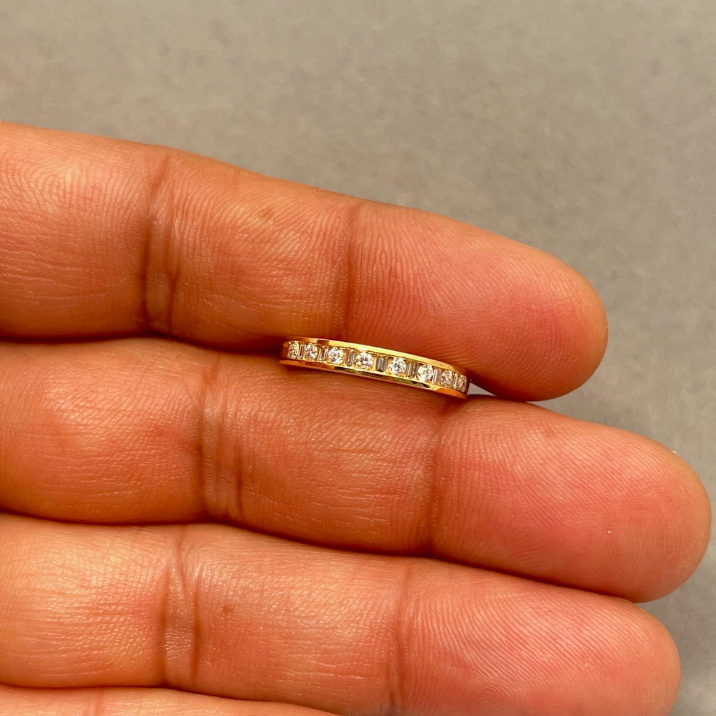 0.20–0.25 Ct Diamond Wedding Band | Round & Baguette Channel Set Ring | SI1–SI2 I–J | 18K Yellow Gold Fine Jewelry