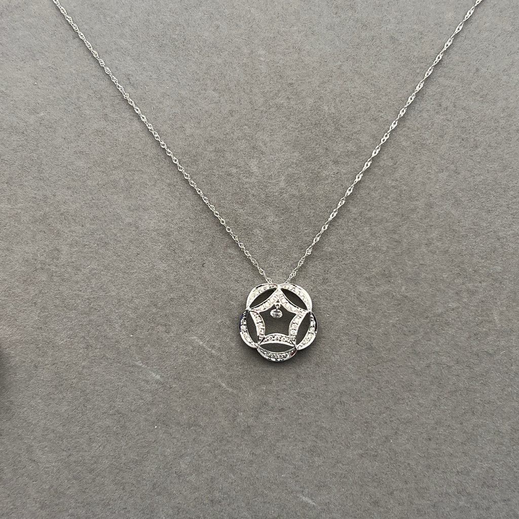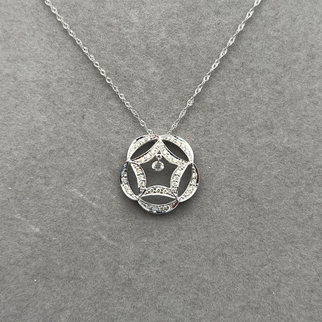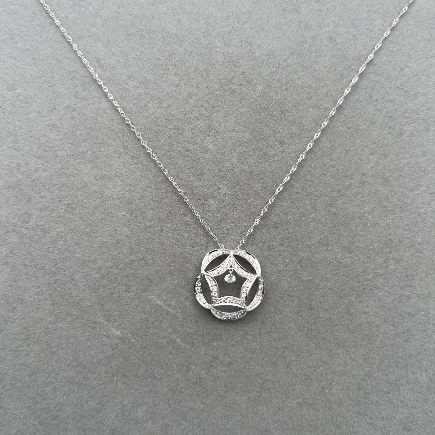 This elegant Diamond Dangle Pendant features a center diamond weighing approximately 0.28–0.33 carats, crafted in luxurious 18K White Gold. The dangling design allows the diamond to move freely, creating a captivating sparkle from every angle. The pendant comes complete with an 18-inch 14K White Gold Singapore chain, offering a unique and sophisticated look that stands out. The diamond is SI2–I1 clarity with I–J color, ensuring brilliance and quality.