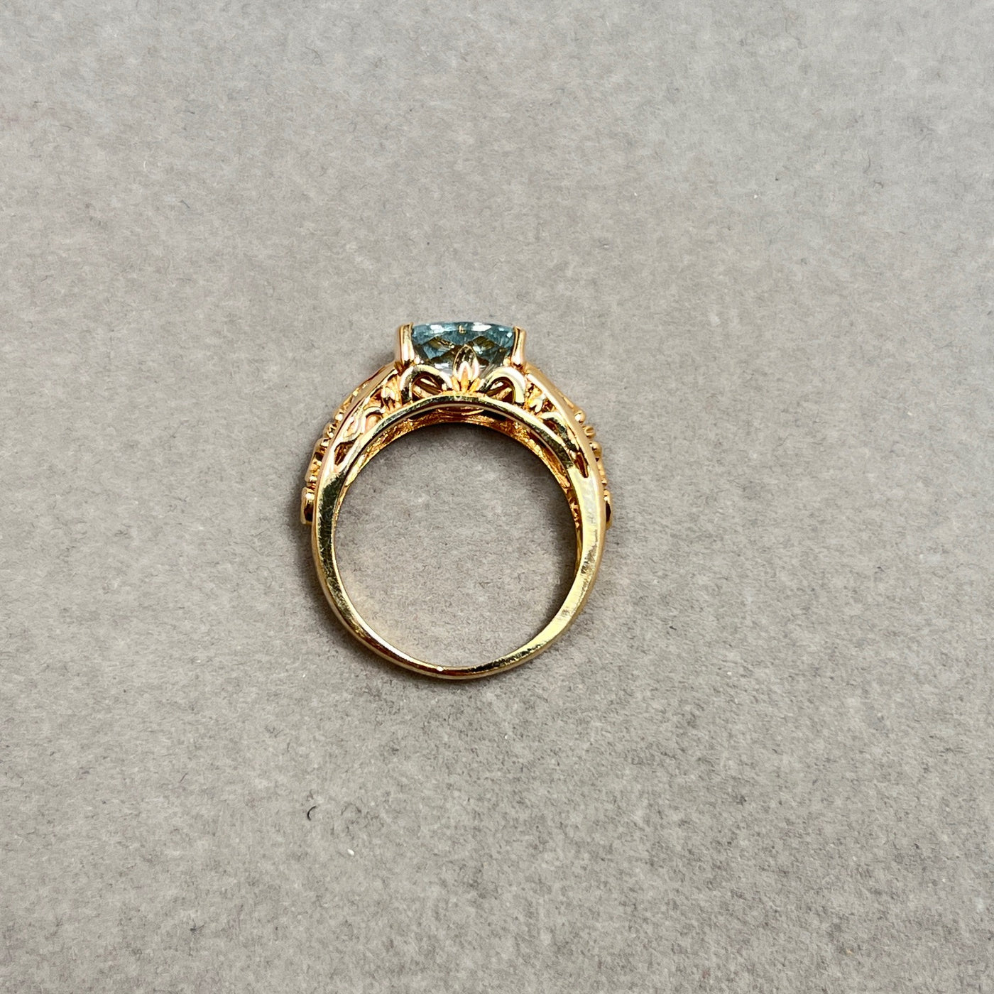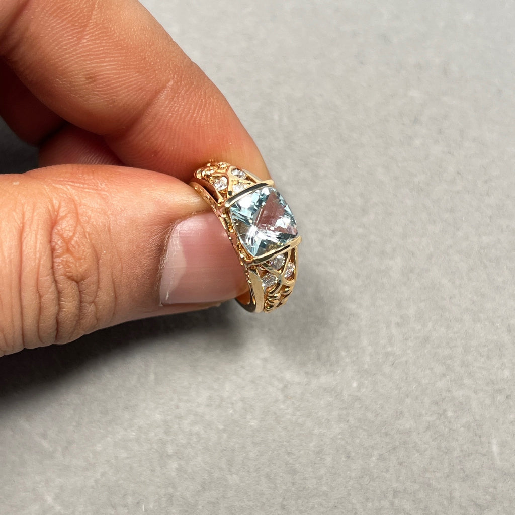 0.28 Ct Diamond & 1.58–2.02 Ct Aquamarine Ring in 14K Yellow Gold Size 7