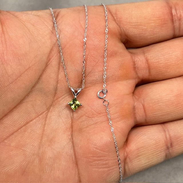 0.30–0.40 Cts Peridot Solitaire Pendant in 14K White Gold | Natural Princess-Cut Peridot, August Birthstone Jewelry, Peridot Pendant