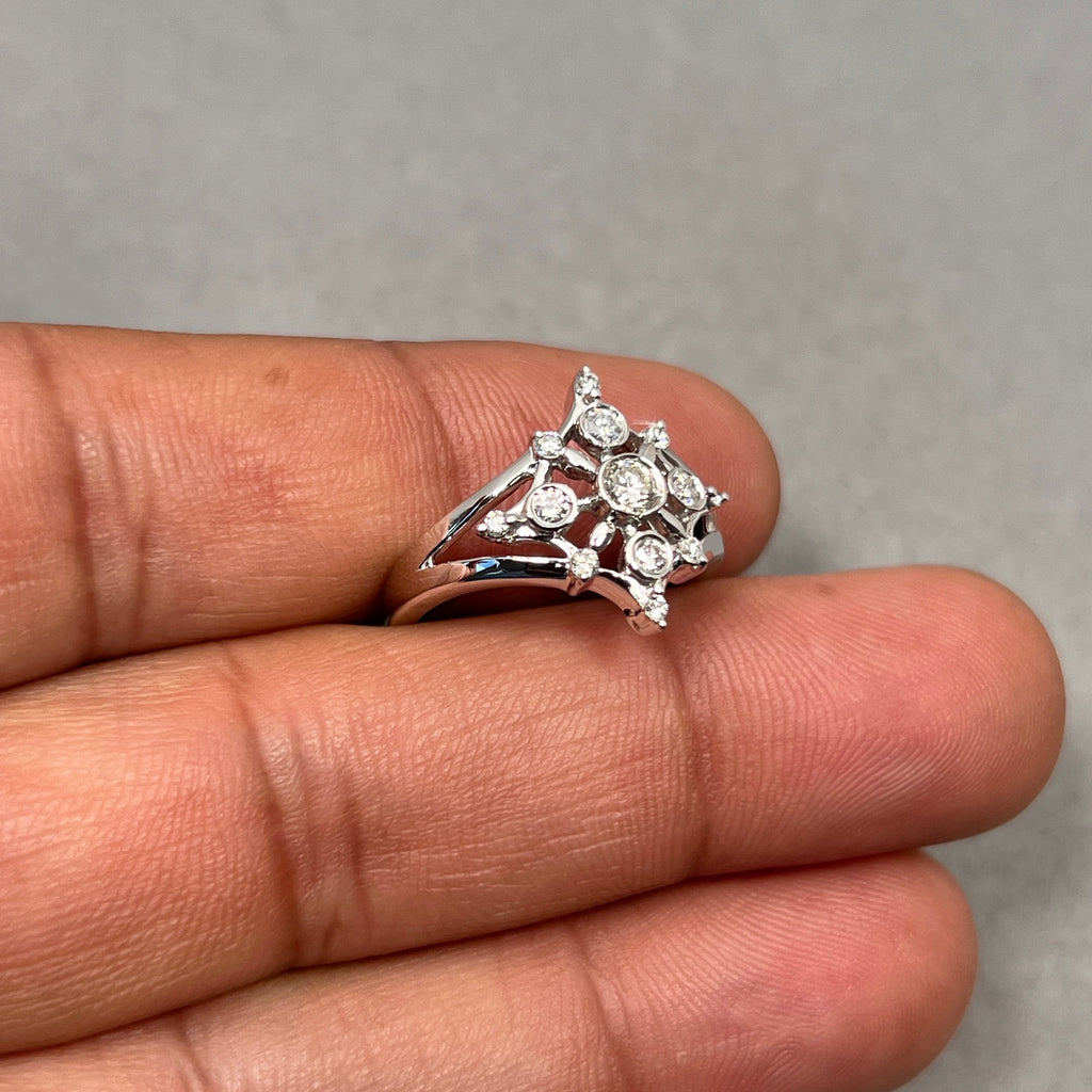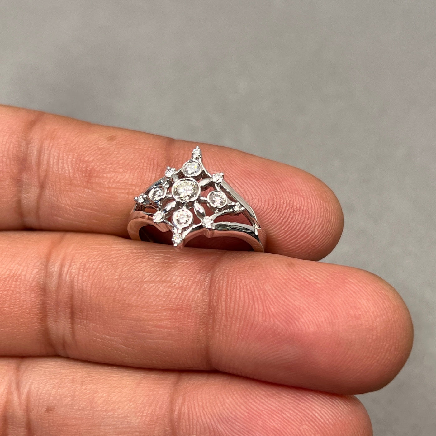0.40–0.45 Ct Diamond Right Hand Ring in 14K White Gold | SI2–I1 Clarity, I–J Color, Elegant Prong-Set Statement Ring Size 7
