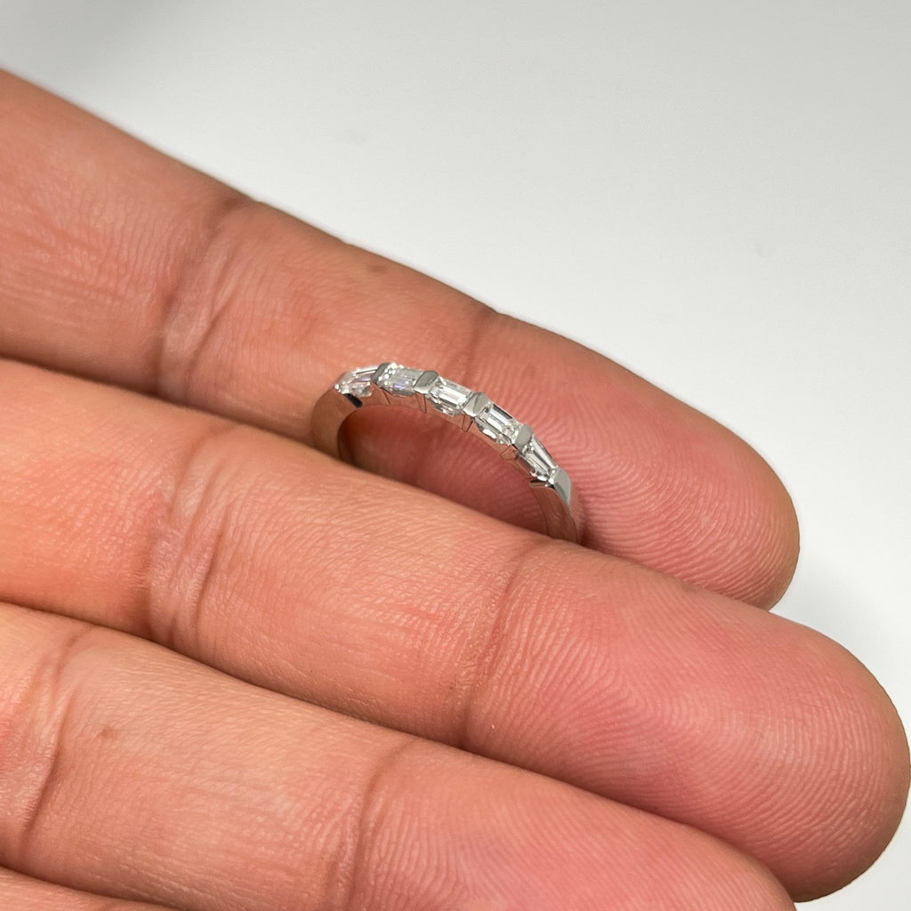 0.42 Ct Diamond Five Stone Ring | Baguette & Tapered Diamond Band | 14K Gold Channel Bar Set Ring | Anniversary Wedding Jewelry