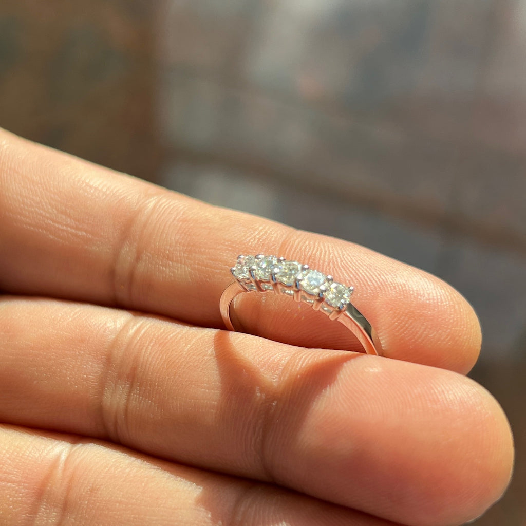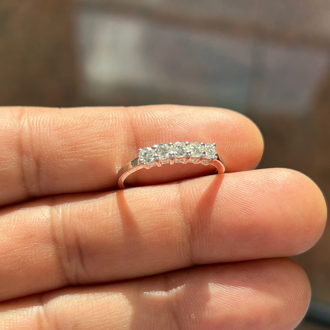 0.45–0.50 Ct Diamond Five-Stone Ring in 18K White Gold | SI2–I1 Clarity, I–J Color, Elegant Multi-Diamond Ring for Women Size 9