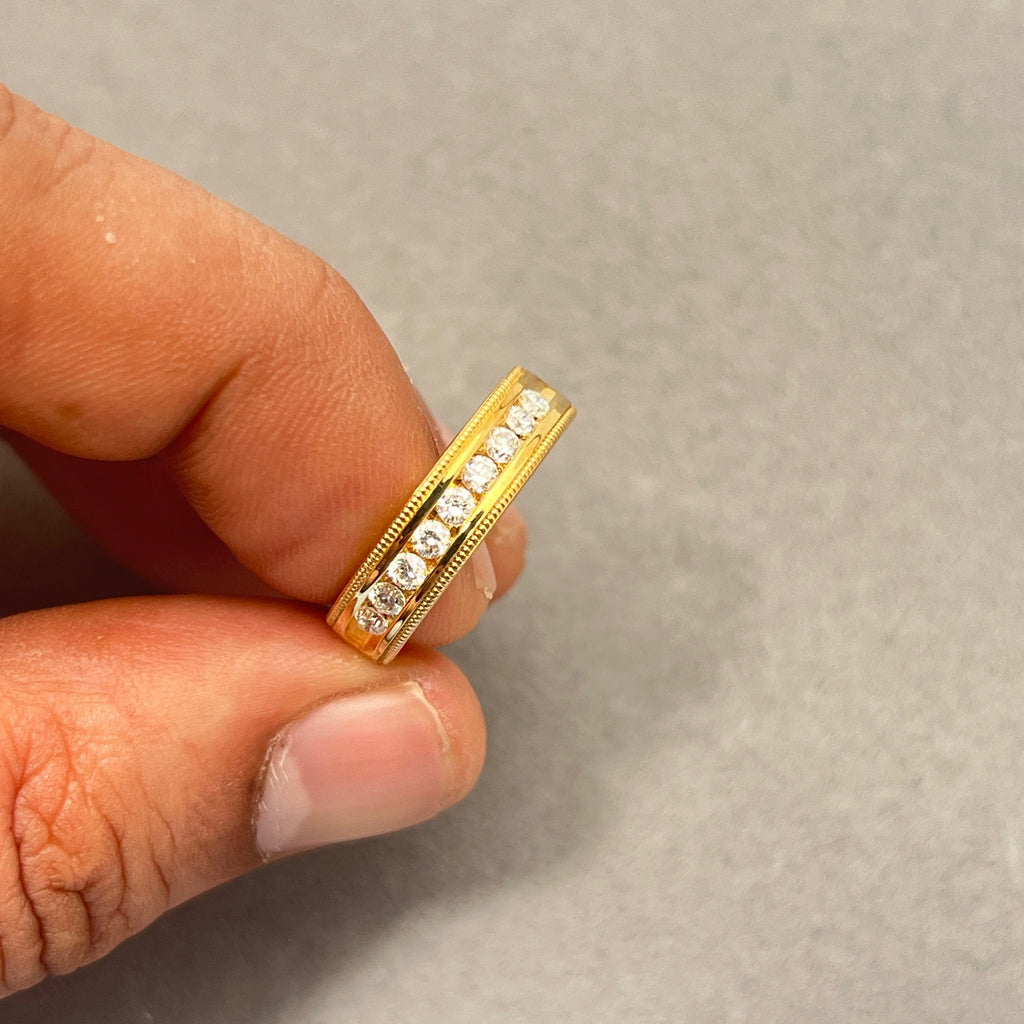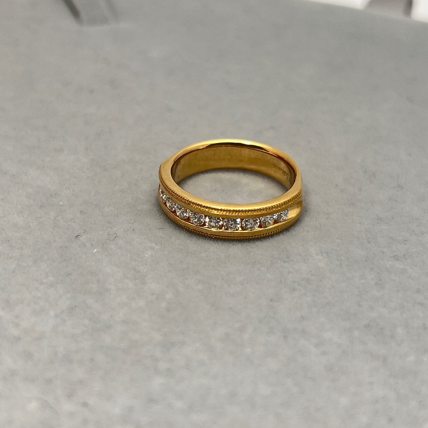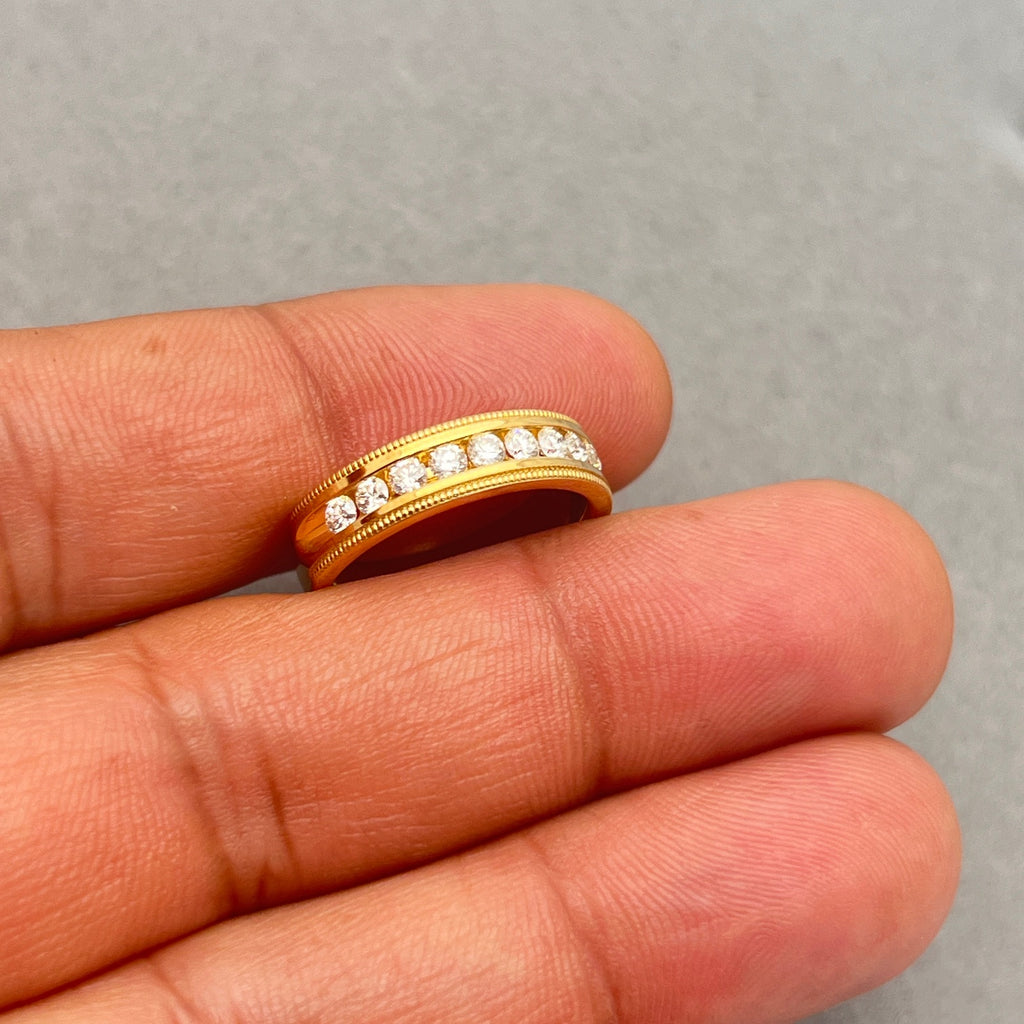 0.45–0.50 Ct Diamond Milgrain Wedding Ring | SI1–SI2 I–J Round Channel Set Band | 18K Yellow Gold Fine Jewelry | Size 7