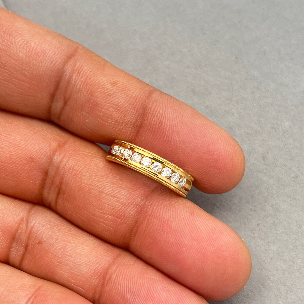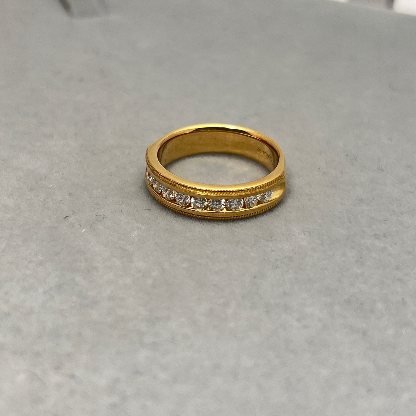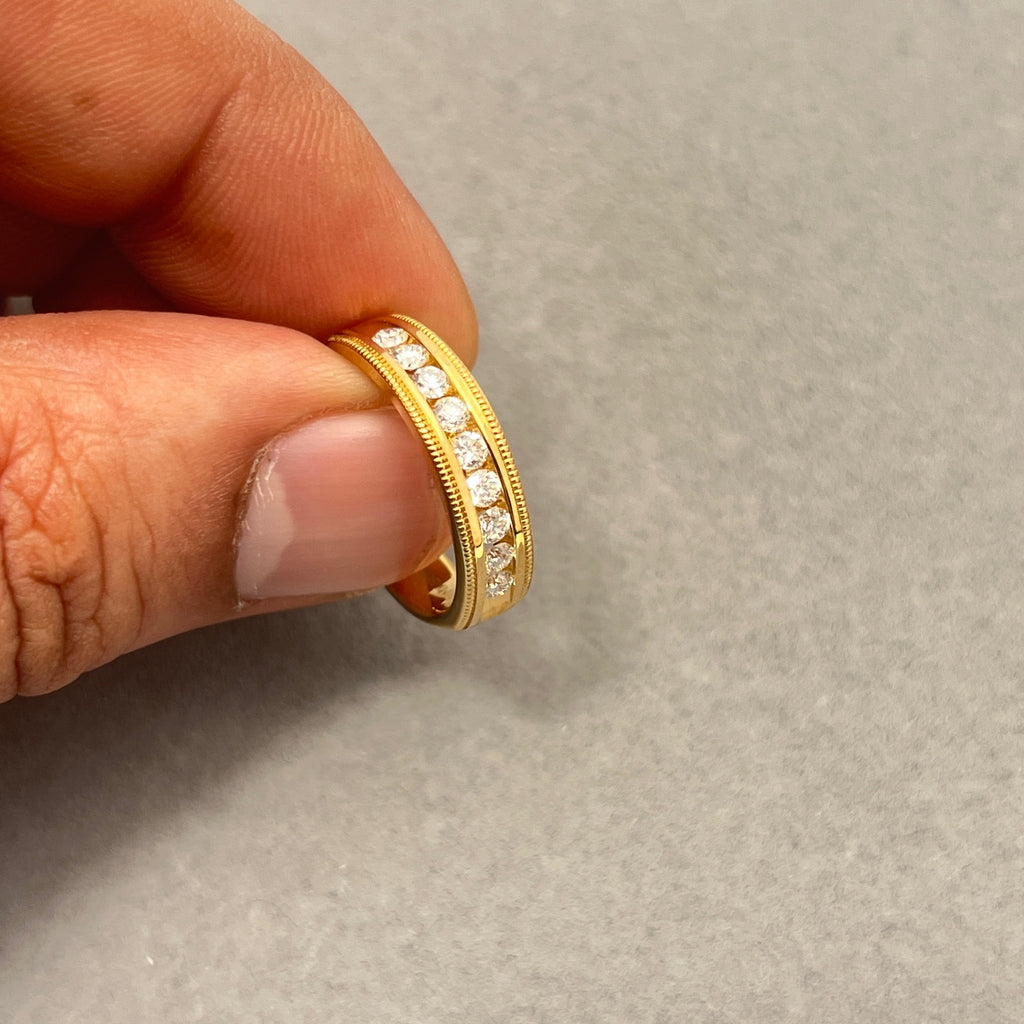 0.45–0.50 Ct Diamond Milgrain Wedding Ring | SI1–SI2 I–J Round Channel Set Band | 18K Yellow Gold Fine Jewelry | Size 7