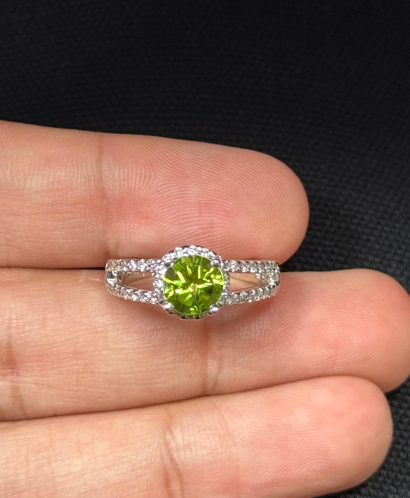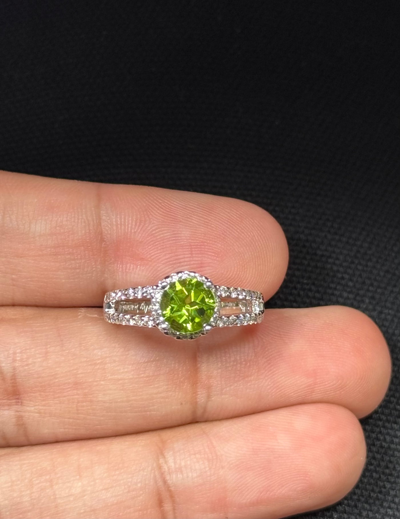0.46 Cts Diamond & 1.50 Cts Peridot Ring in 14K White Gold