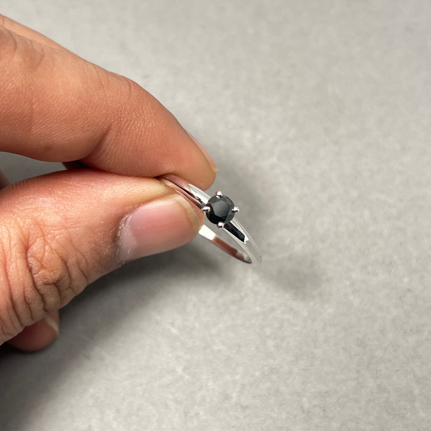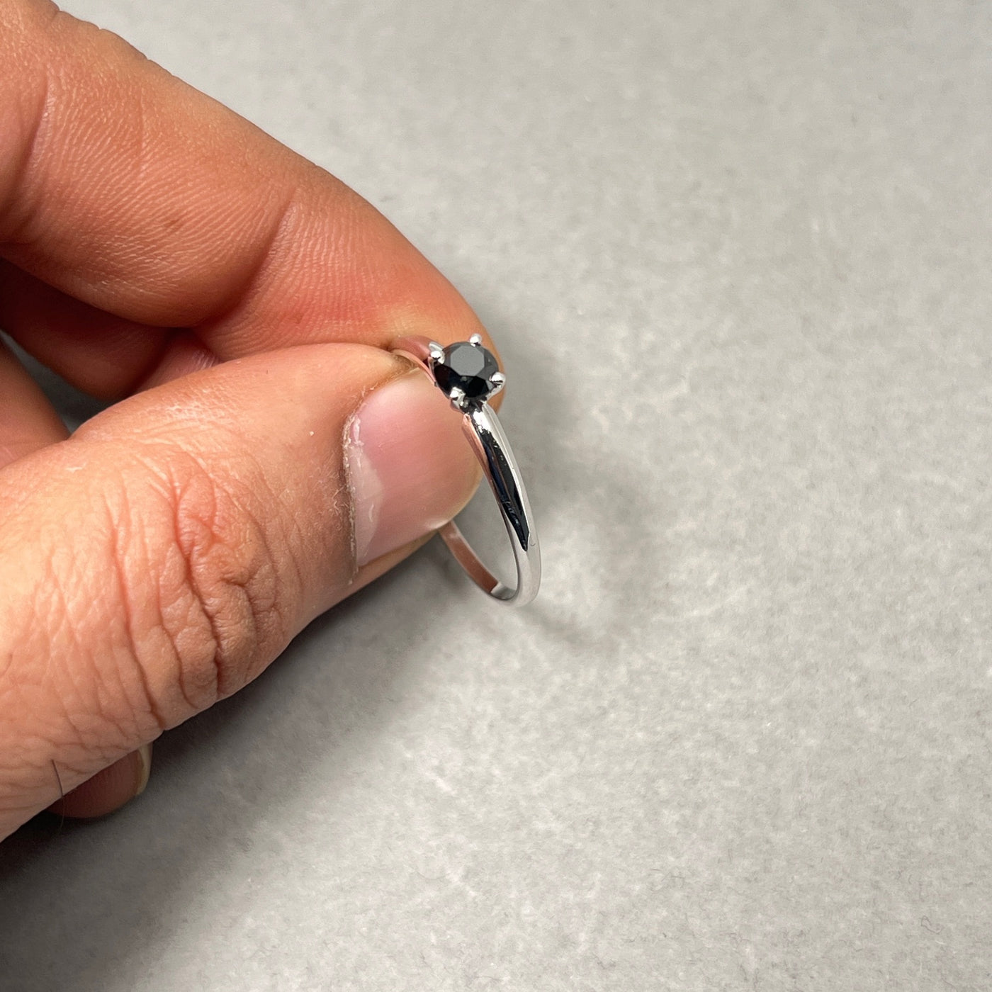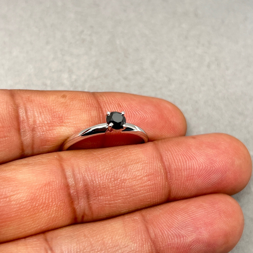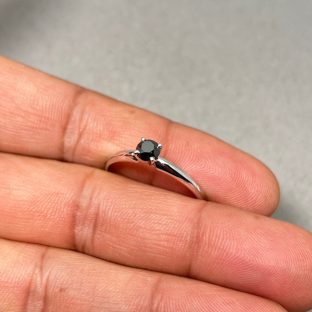 0.50 Ct 4.89 mm AA Round Black Diamond Solitaire Ring in 14K White Gold | Elegant Black Diamond Engagement or Statement Ring Size 12