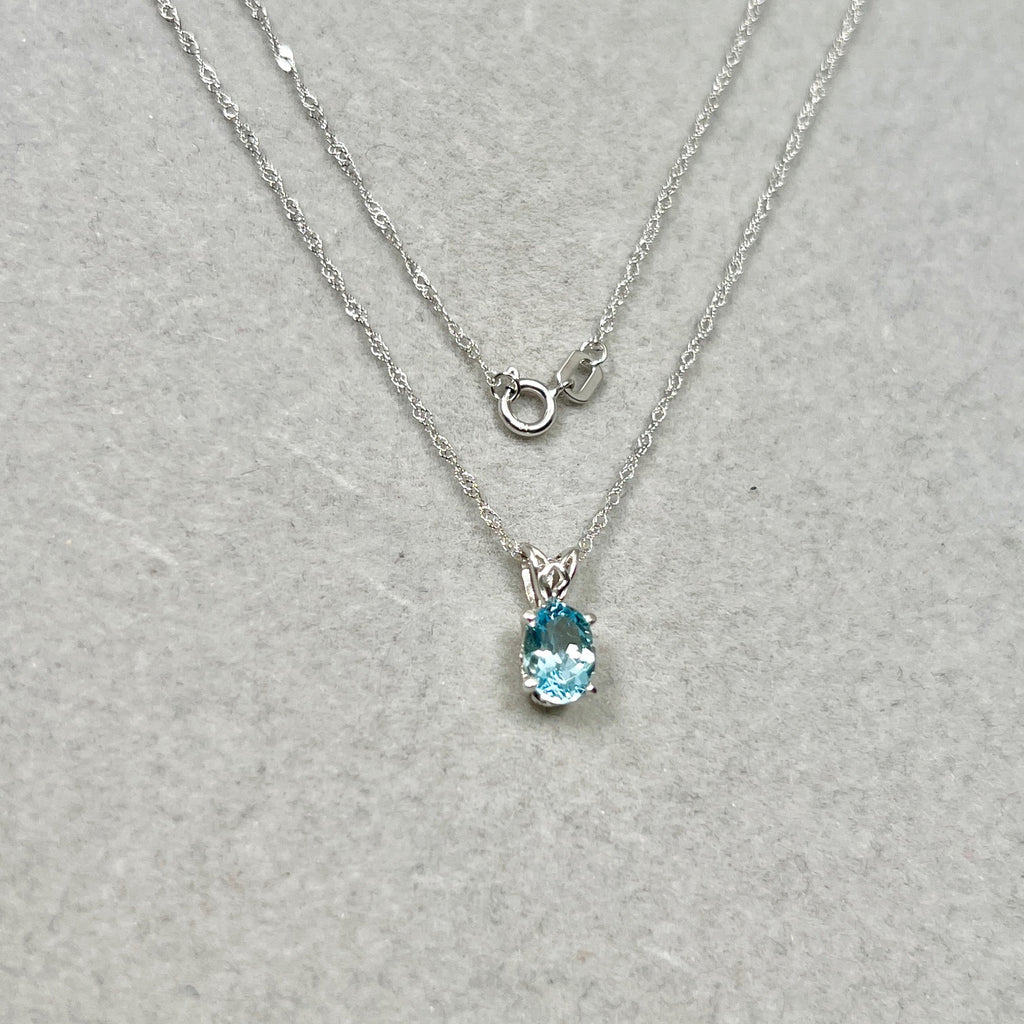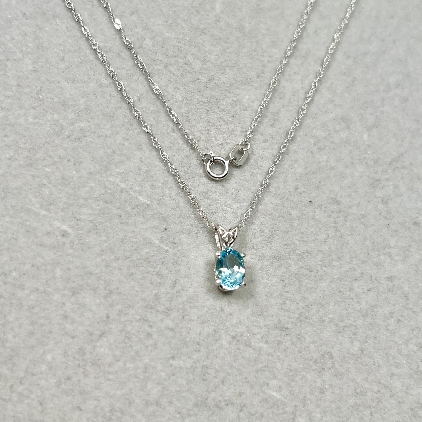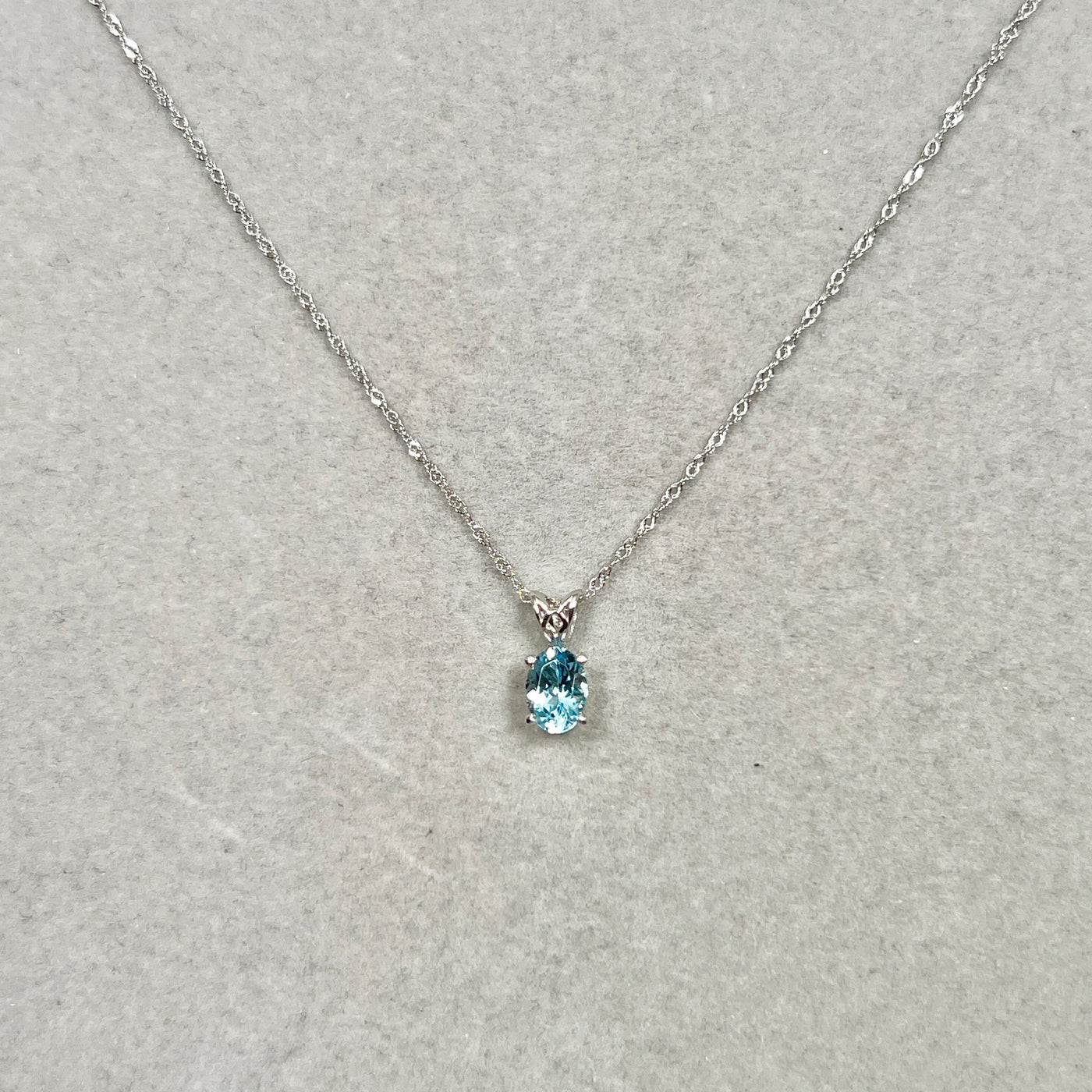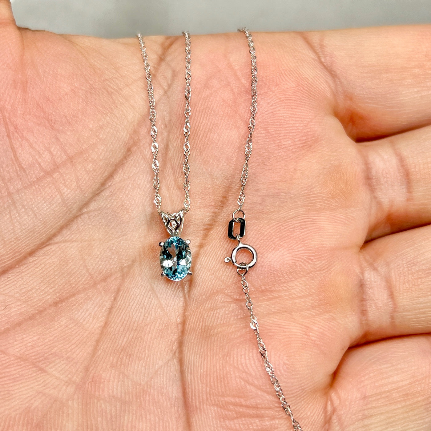 0.52–0.78 Cts AAA Oval Aquamarine Solitaire Scroll Pendant 7x5 mm 18K White Gold – 18” Chain