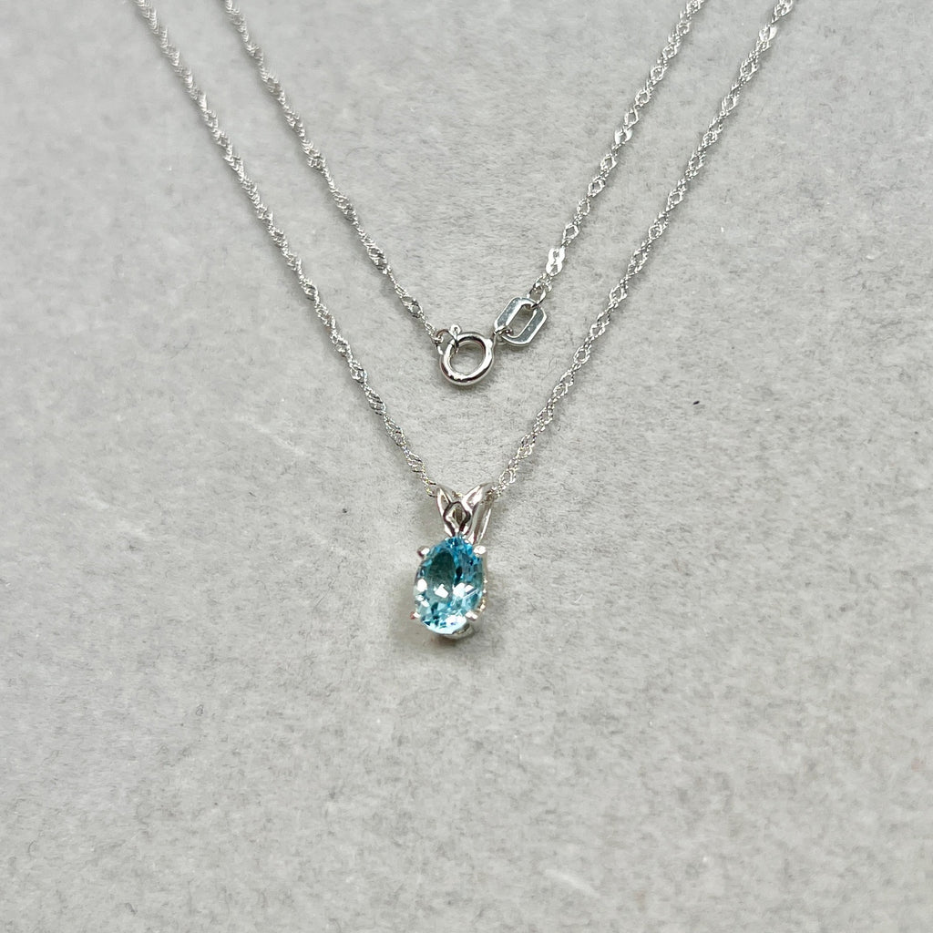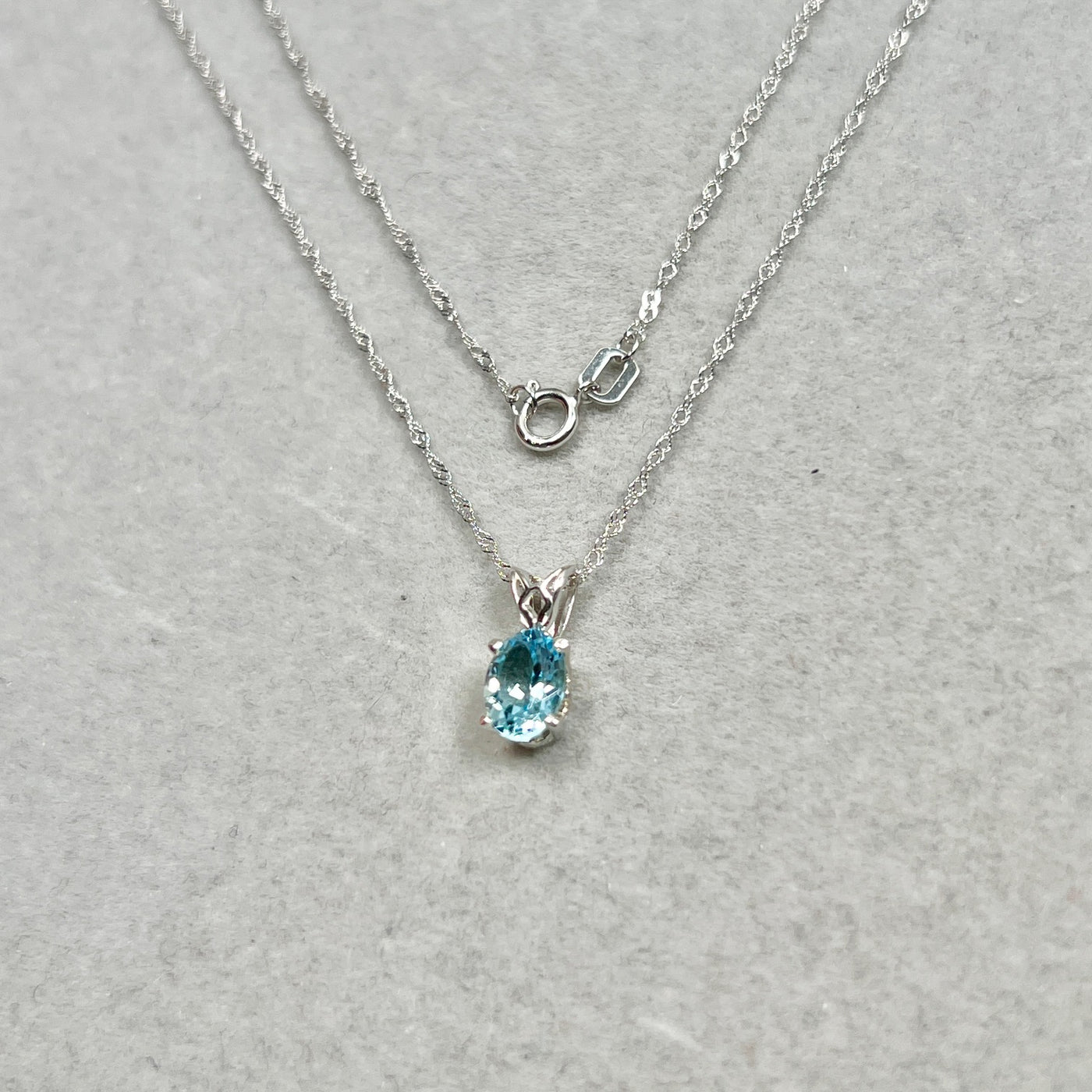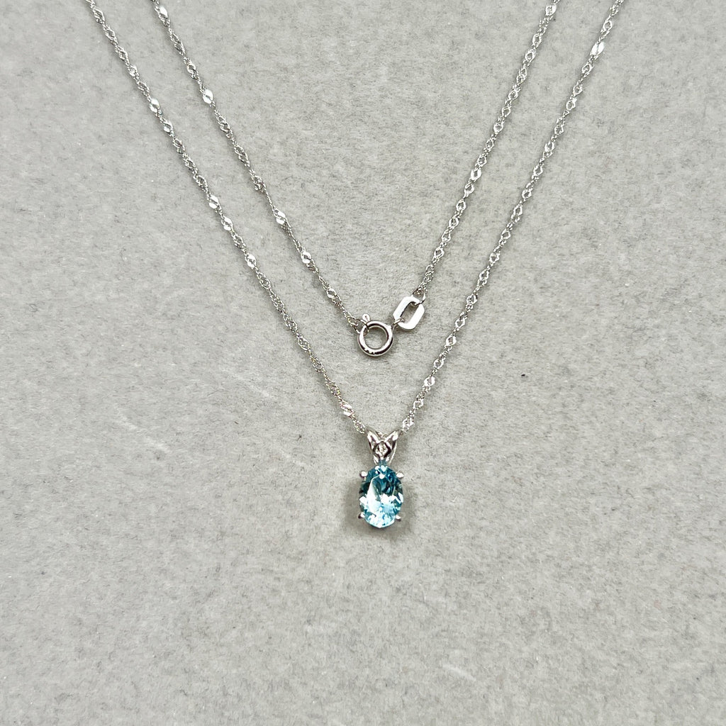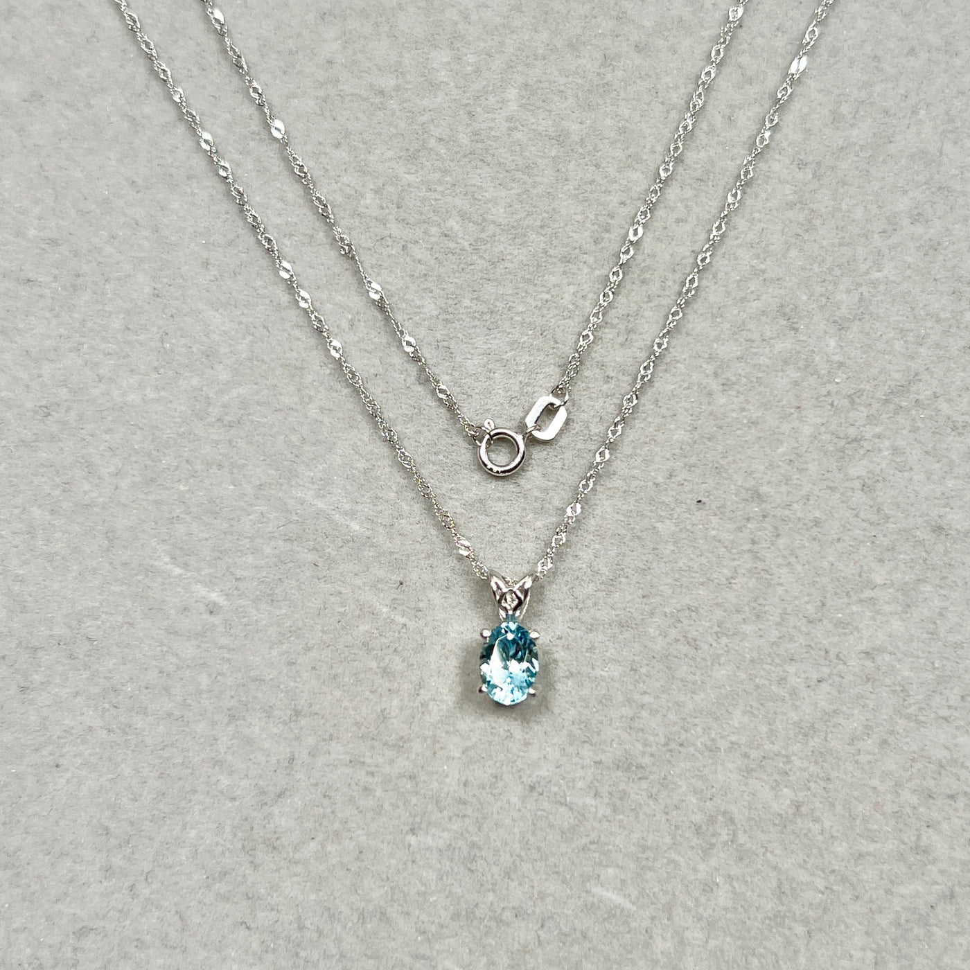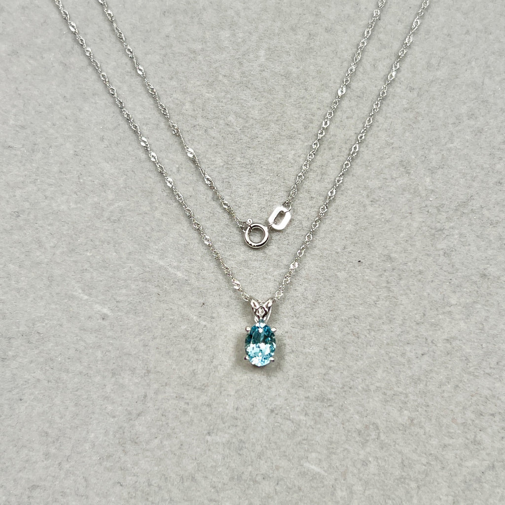 0.52–0.78 Cts AAA Oval Aquamarine Solitaire Scroll Pendant 7x5 mm 18K White Gold – 18” Chain