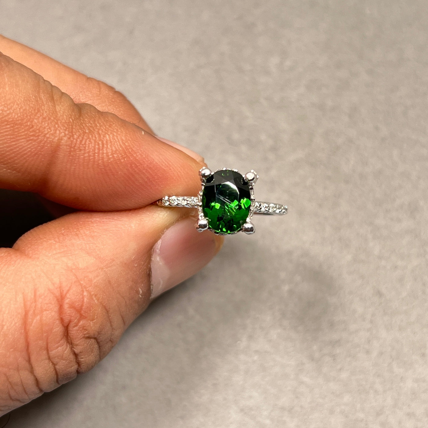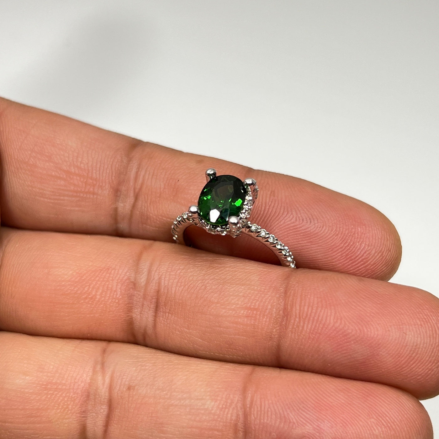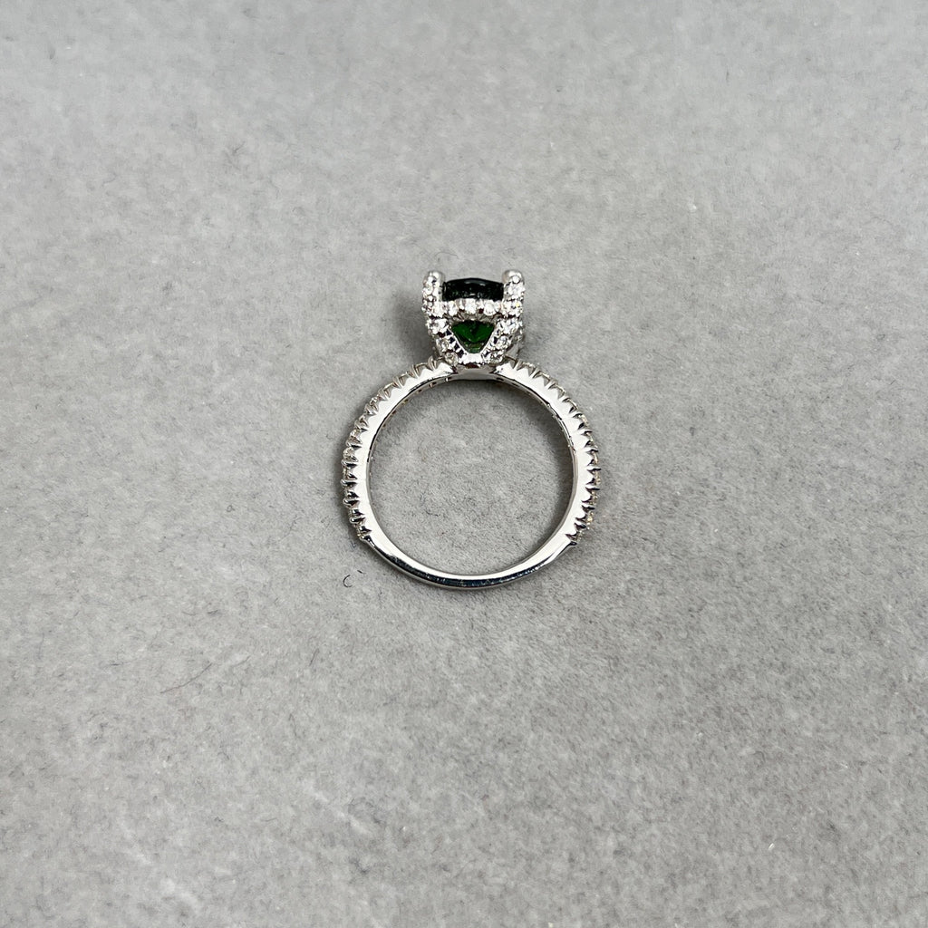 0.56 Ct Diamond & 1.86 Ct Chrome AAA Tourmaline Ring 14K White Gold, Elegant Green Gemstone Engagement or Statement Ring