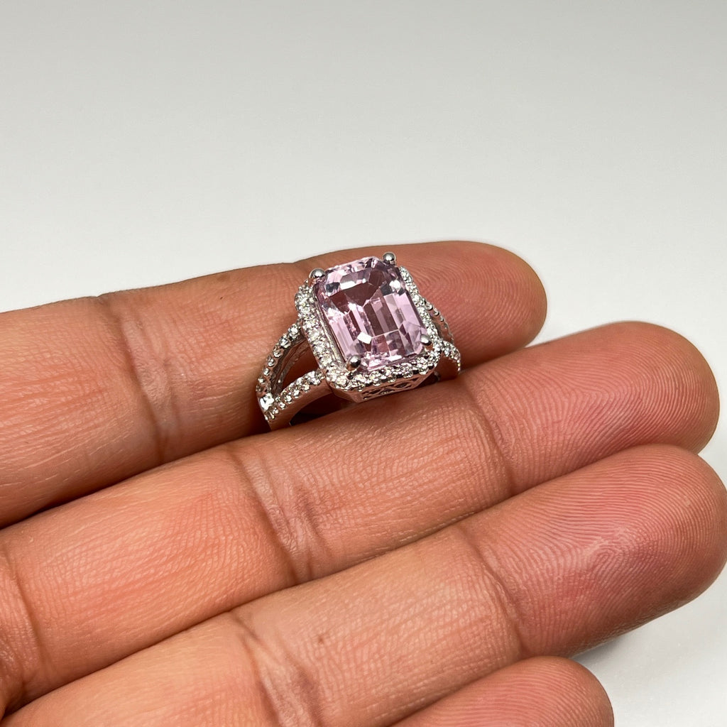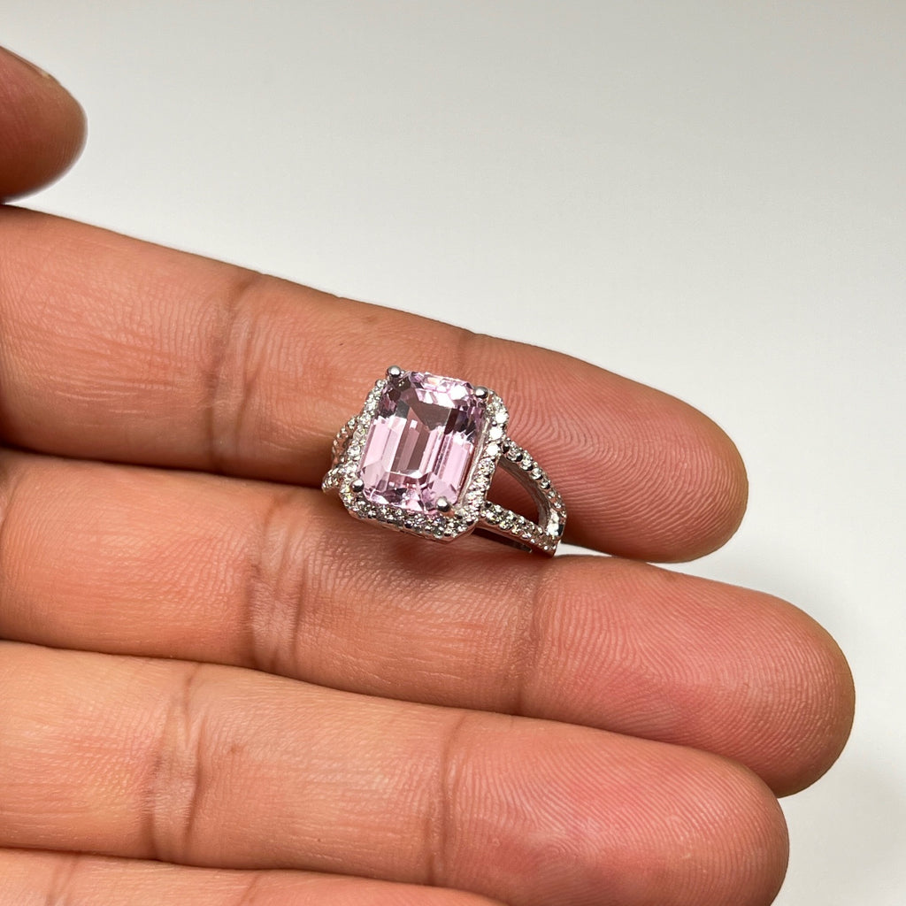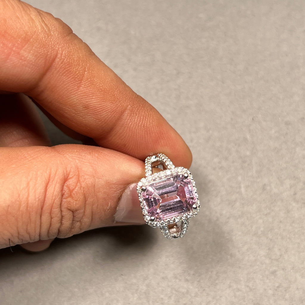 * **Shape:** Emerald Cut (Kunzite), Round (Diamonds)