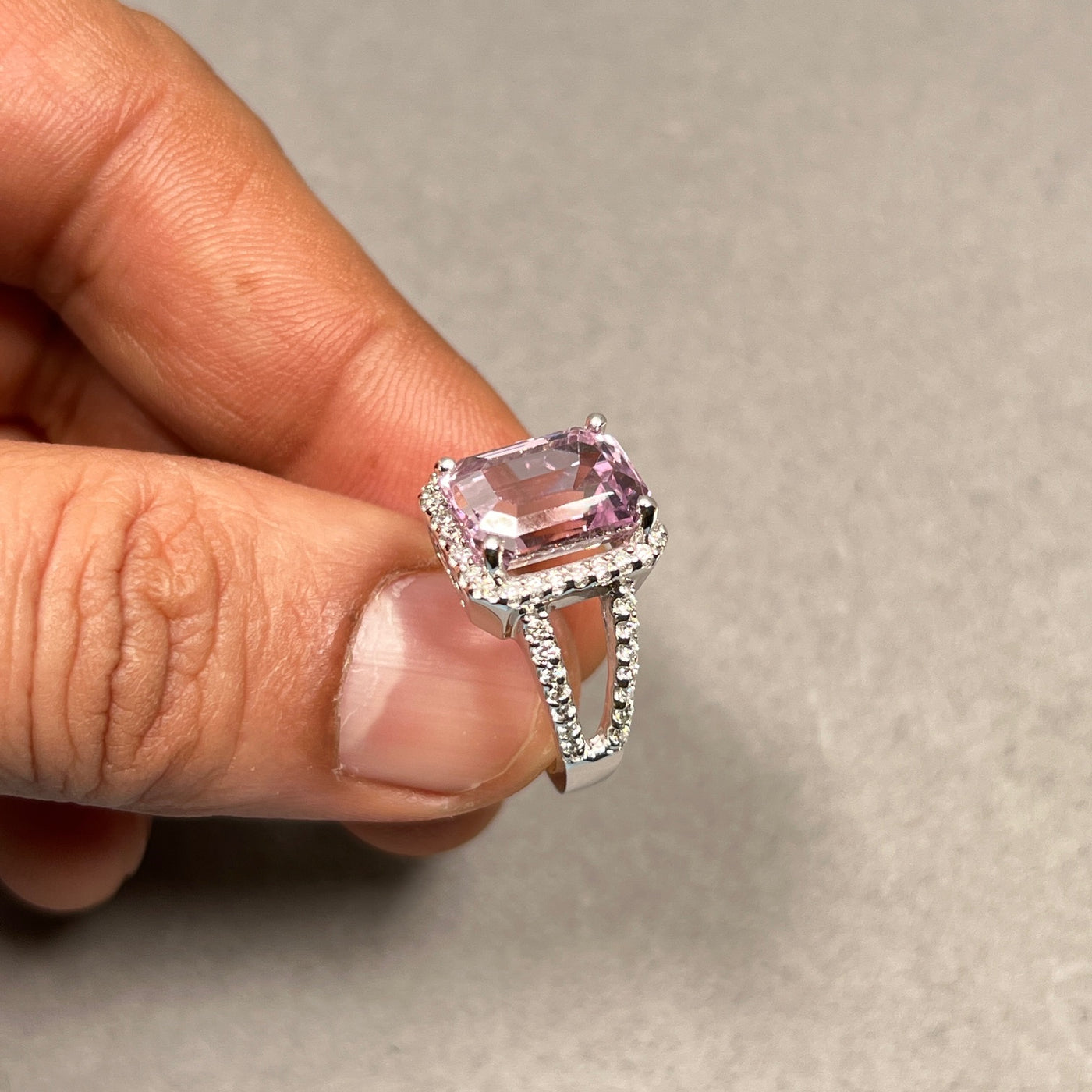 0.56 Ct Diamond & Kunzite Ring 14K Gold, Elegant Pink-Purple Gemstone Engagement or Statement Ring
