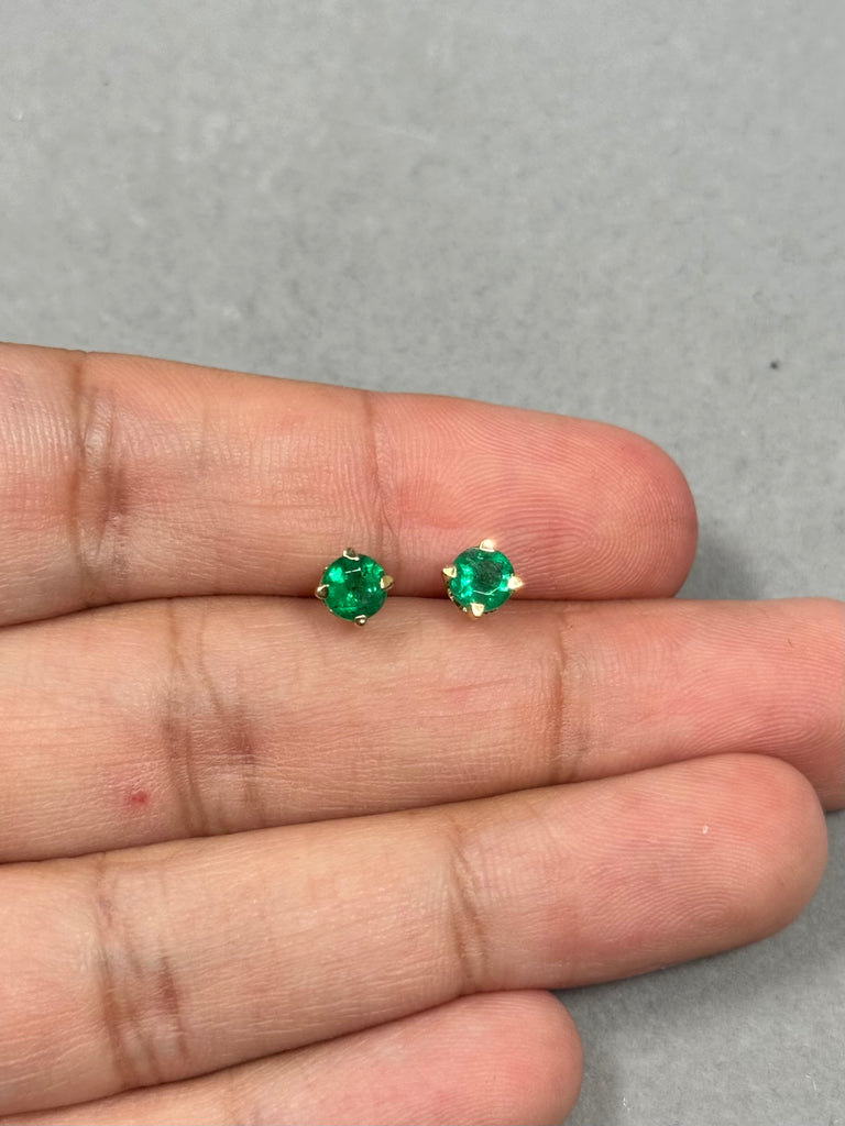 0.61-0.95 Ct Round Natural Emerald Stud Earrings in 18K Yellow Gold – 5mm AA Green Gemstone Scroll Design for Women
