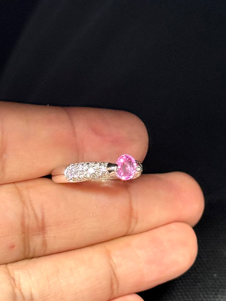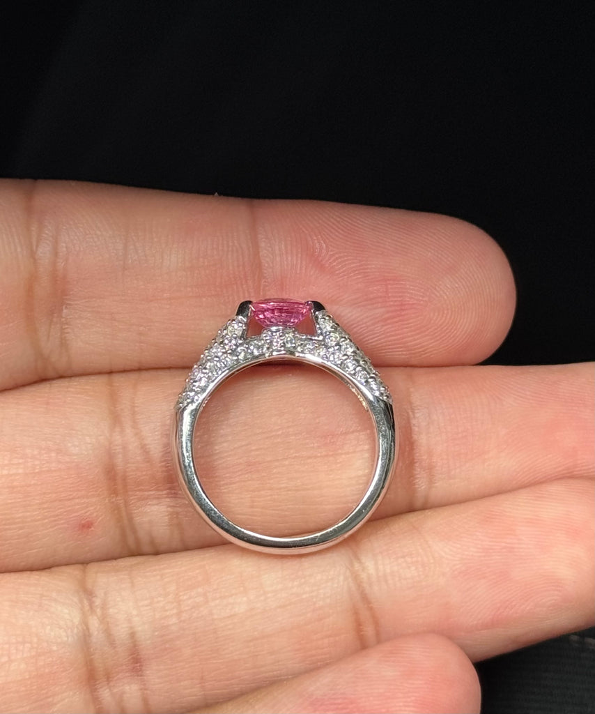 0.64 Ct Diamond & 1.00 Ct Pink Sapphire Ring 14K White Gold, Elegant Pink Gemstone Engagement or Statement Ring