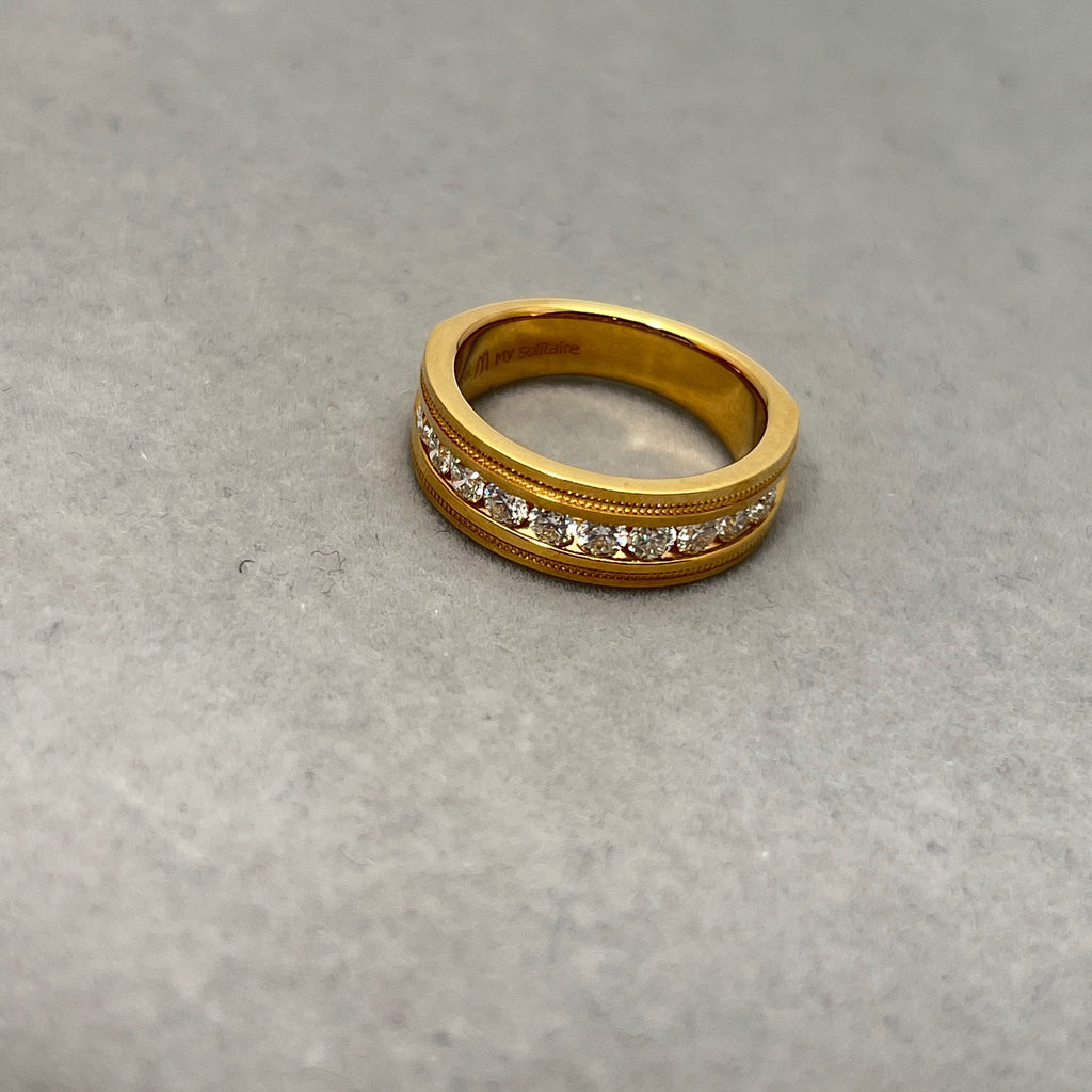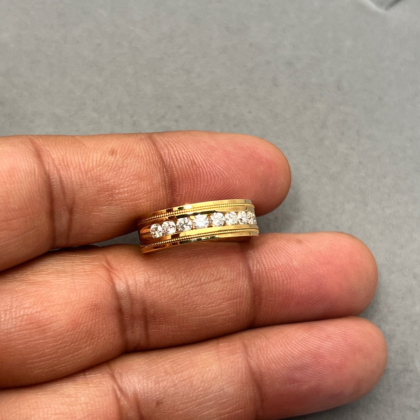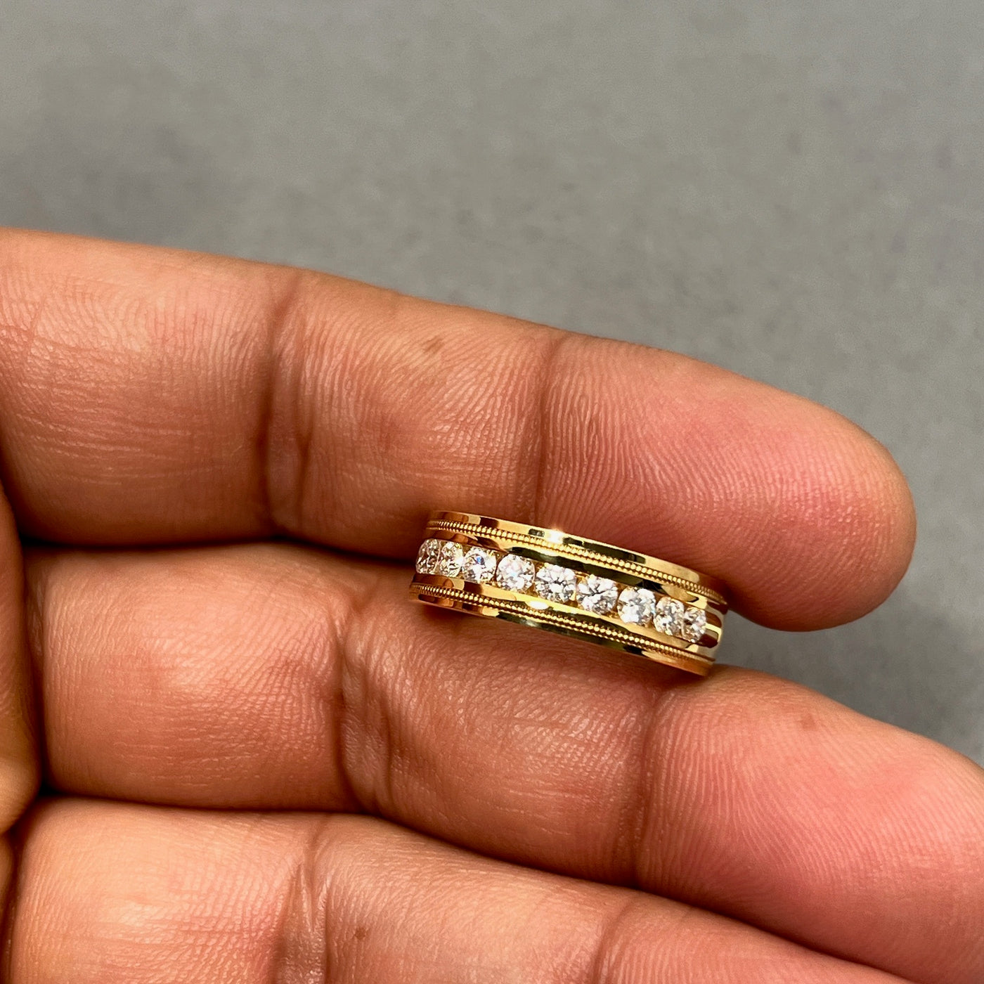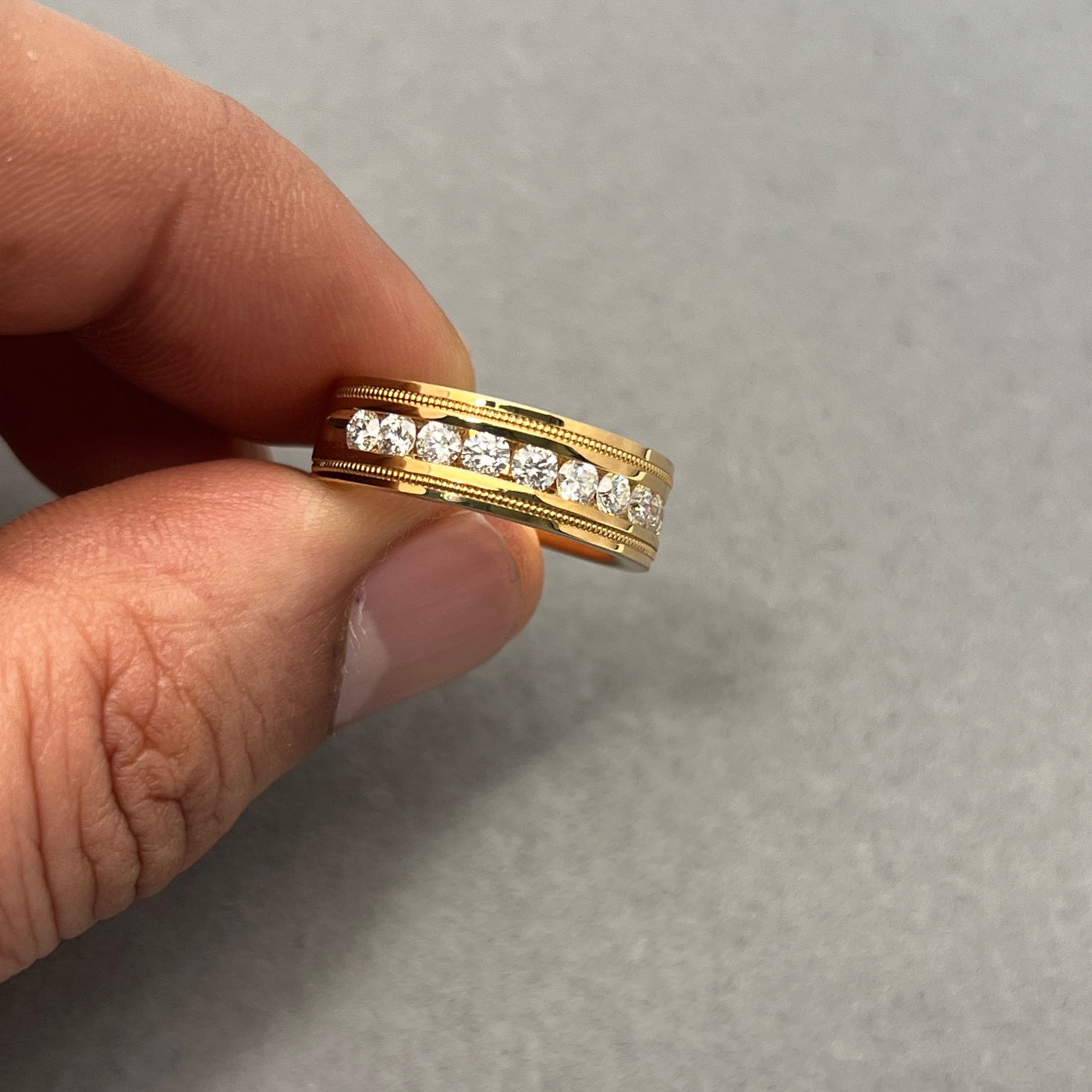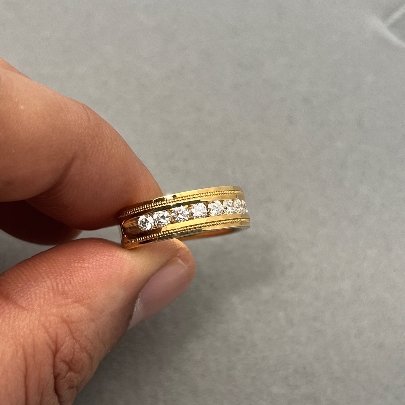 0.70–0.75 Ct Diamond Milgrain Wedding Band | SI1–SI2 I–J Round Channel Set Ring | 18K Yellow Gold Fine Jewelry Ring size 7