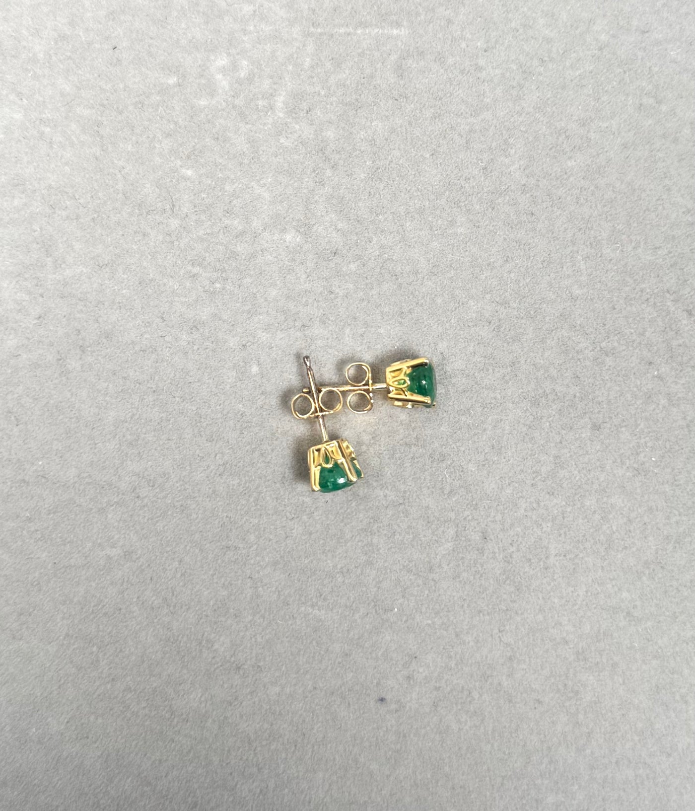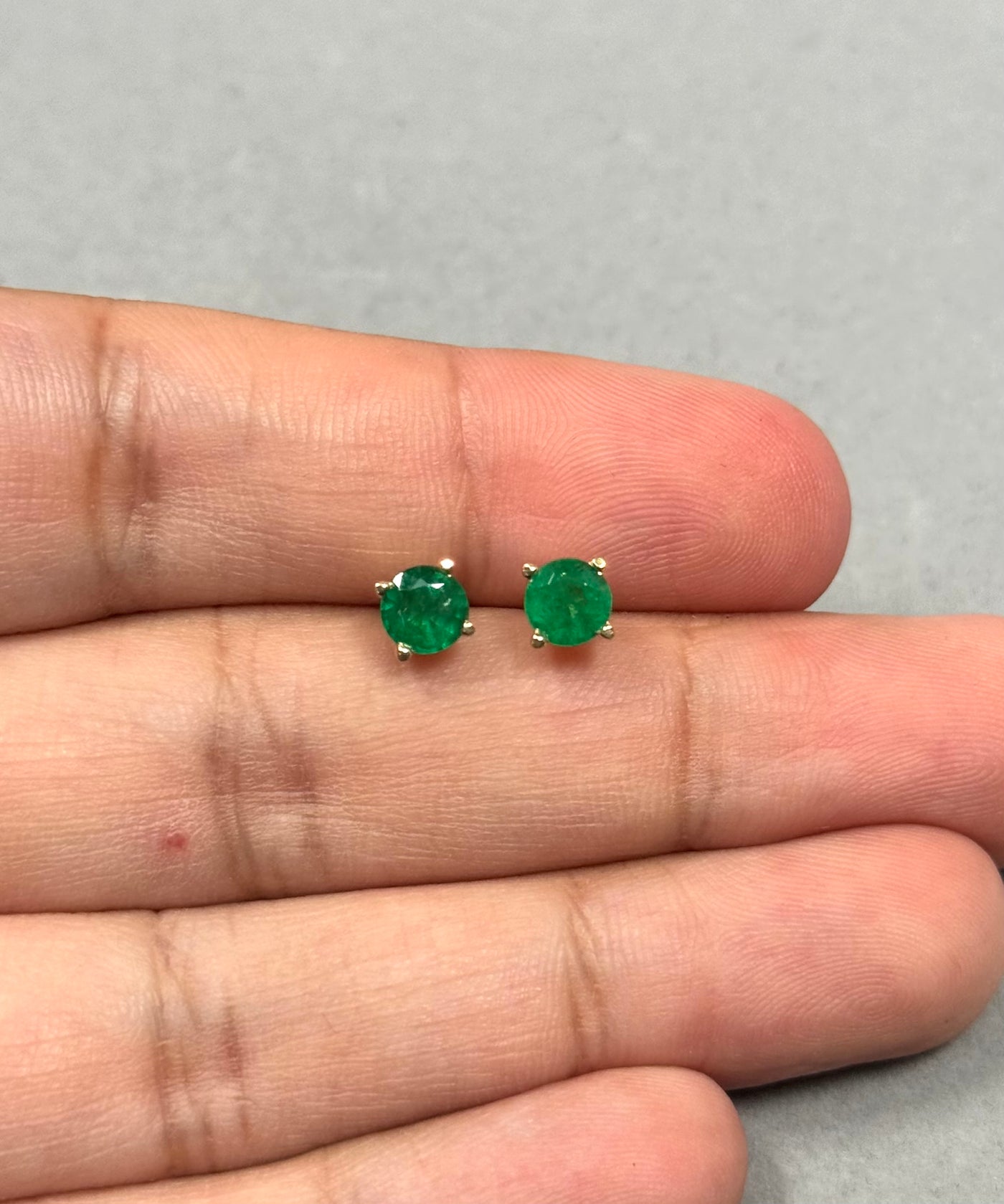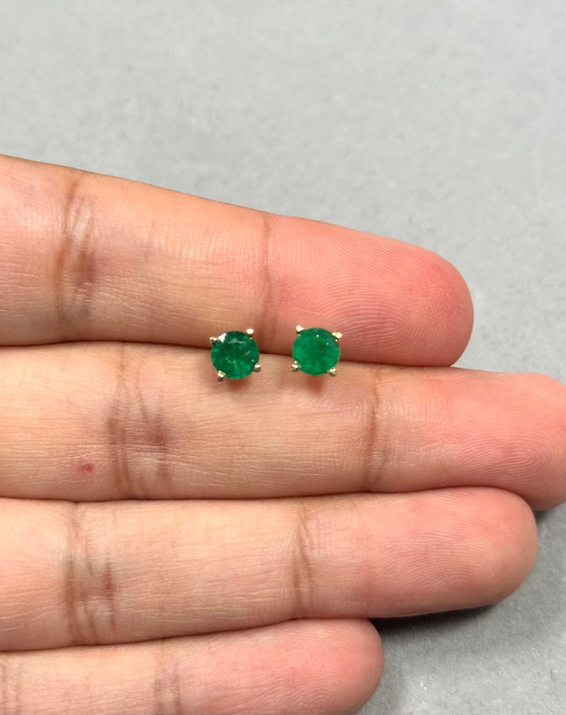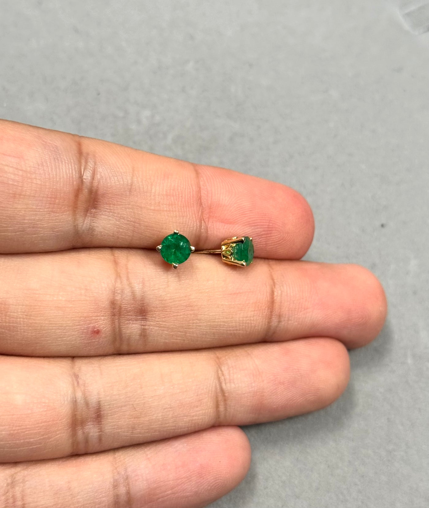 0.95-1.41 Ct Natural Emerald Stud Earrings in 18K Yellow Gold, Round 5.5mm AA Green Gemstone Scroll Studs for Women