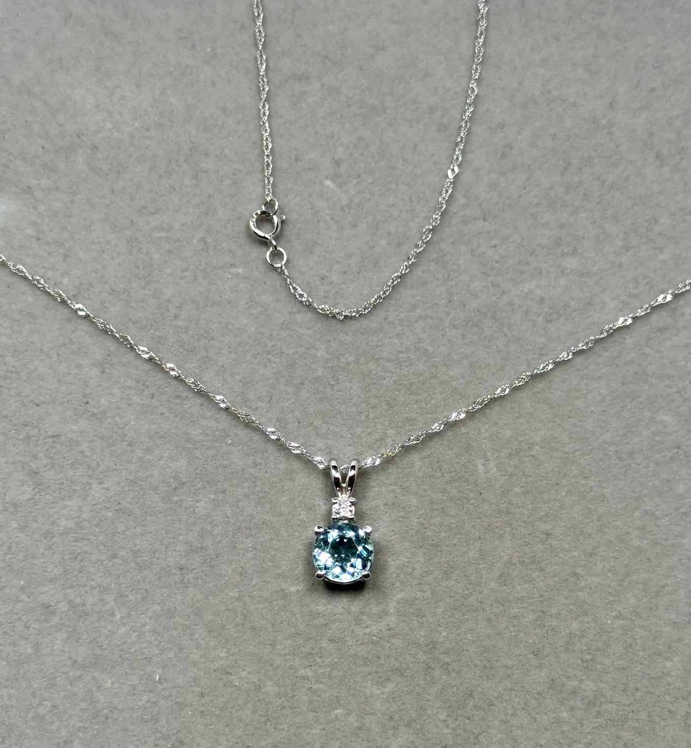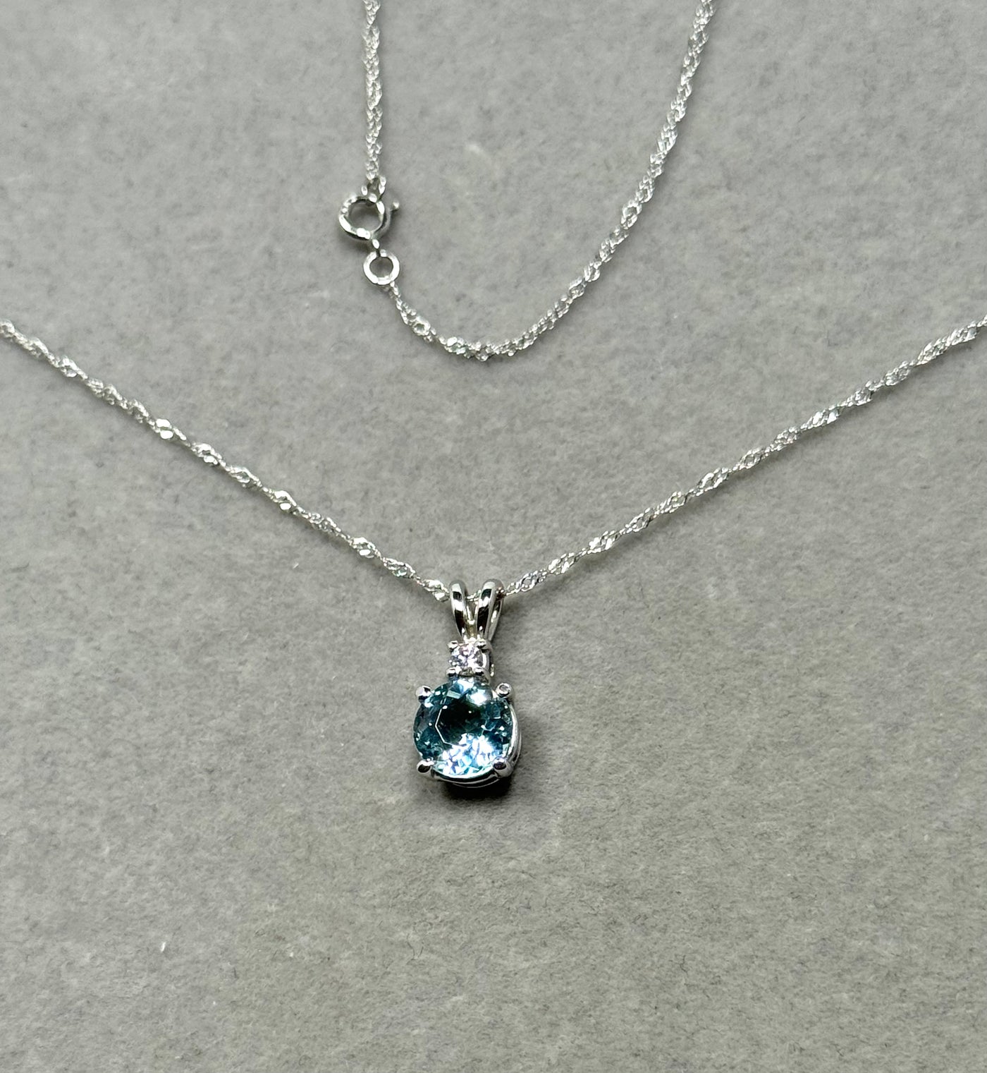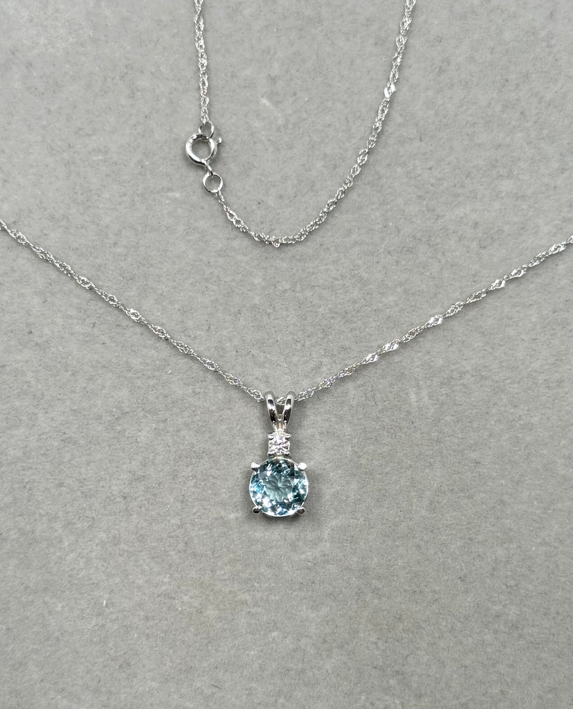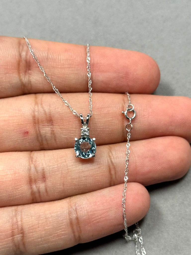 0.95-1.62 Ct Round Aquamarine & Diamond Pendant in 14K White Gold – March Birthstone Necklace (7mm A Quality Gemstone)