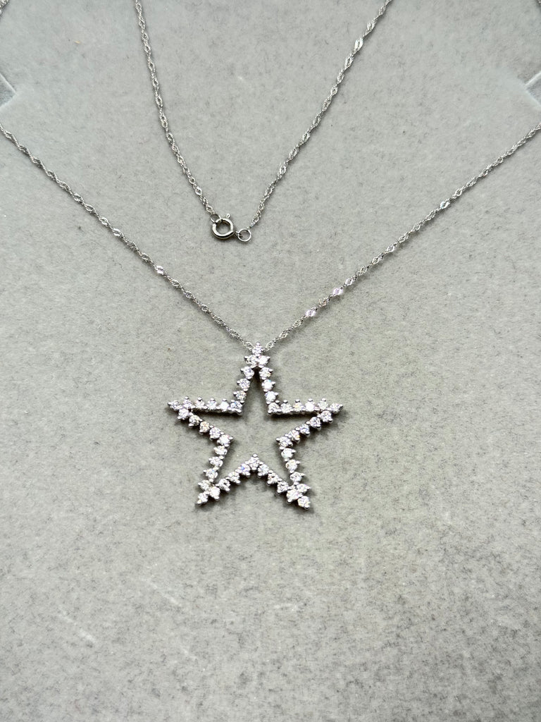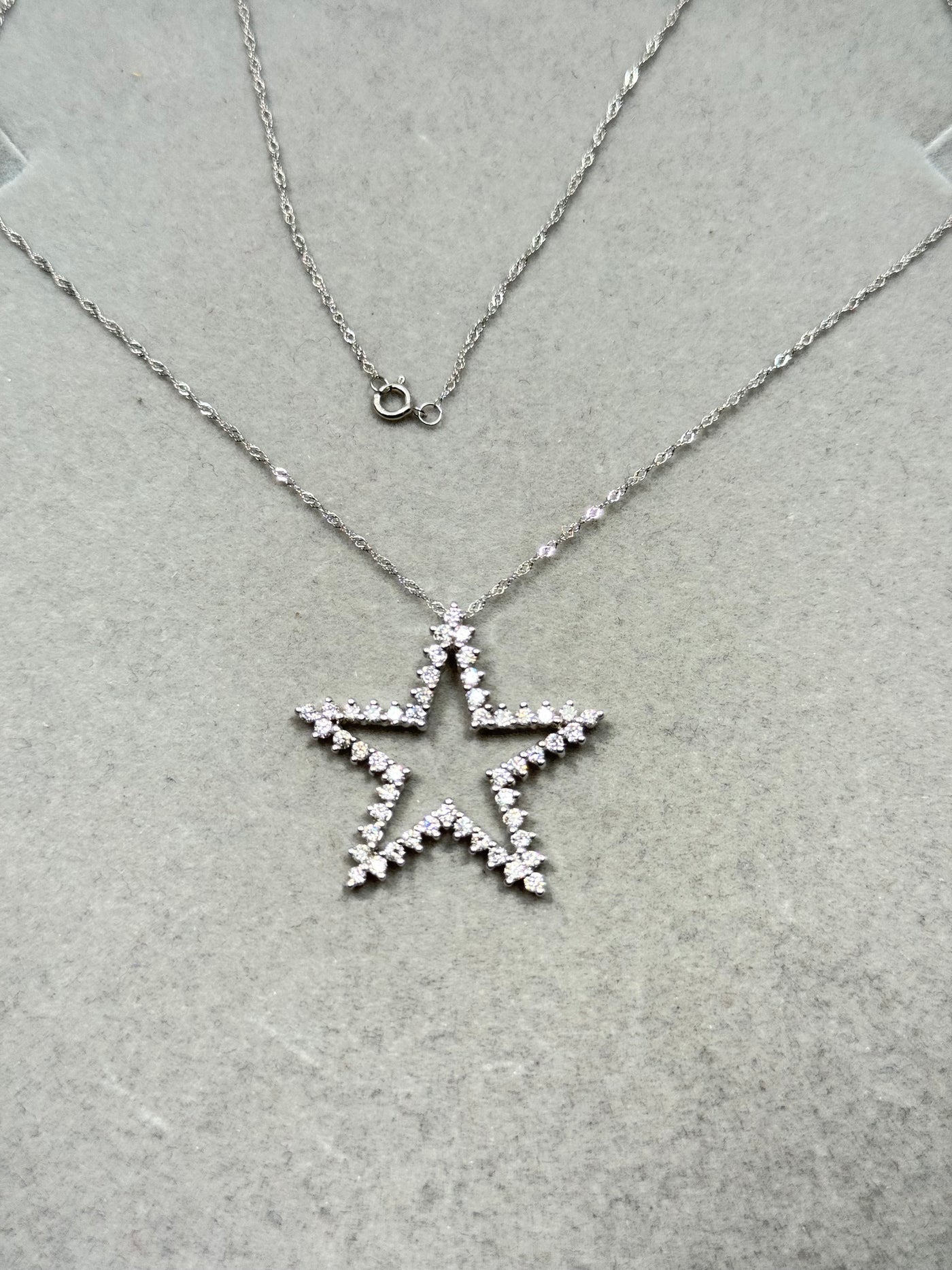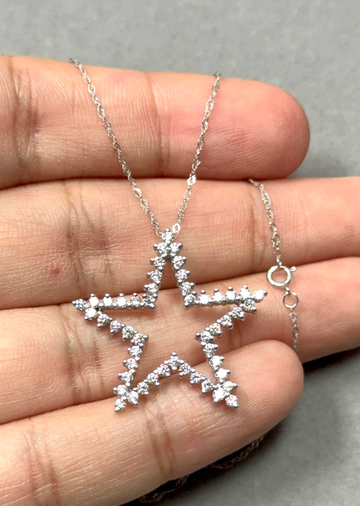 1.04–1.05 Ct SI1–SI2 I–J Diamond Star Pendant 14K White Gold, Sparkling Star-Shaped Diamond Necklace