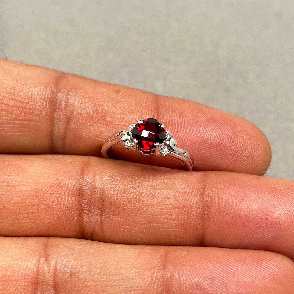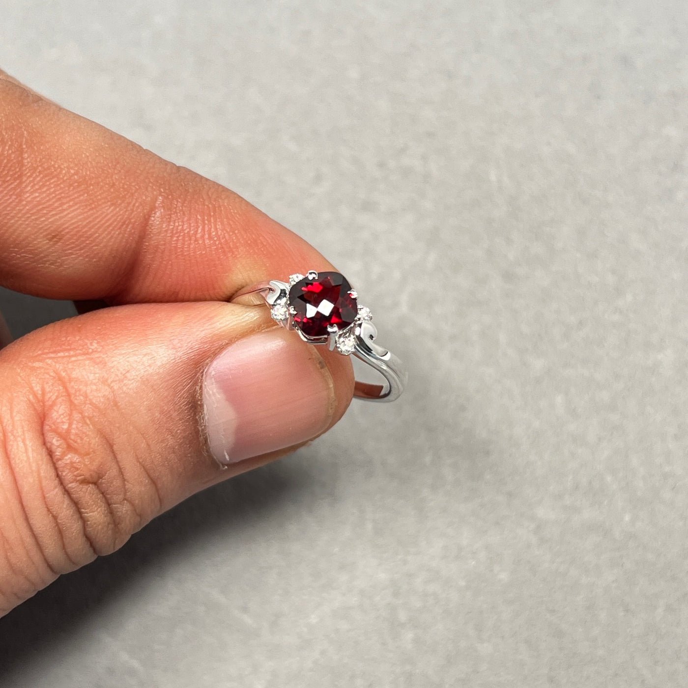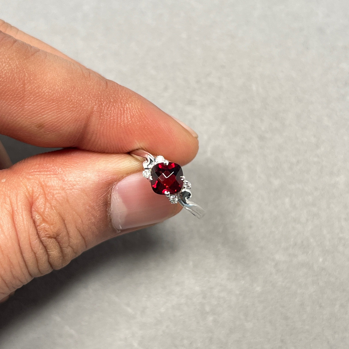 1.20 Ct AAA Garnet & 0.05 Ct Diamond Ring | Cushion Checker Cut | 14K White Gold Fine Jewelry | January Birthstone Gift Size 7