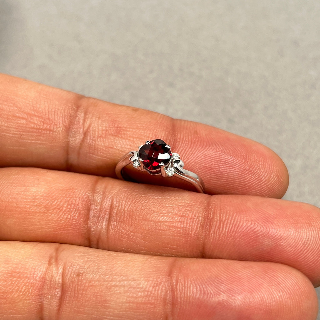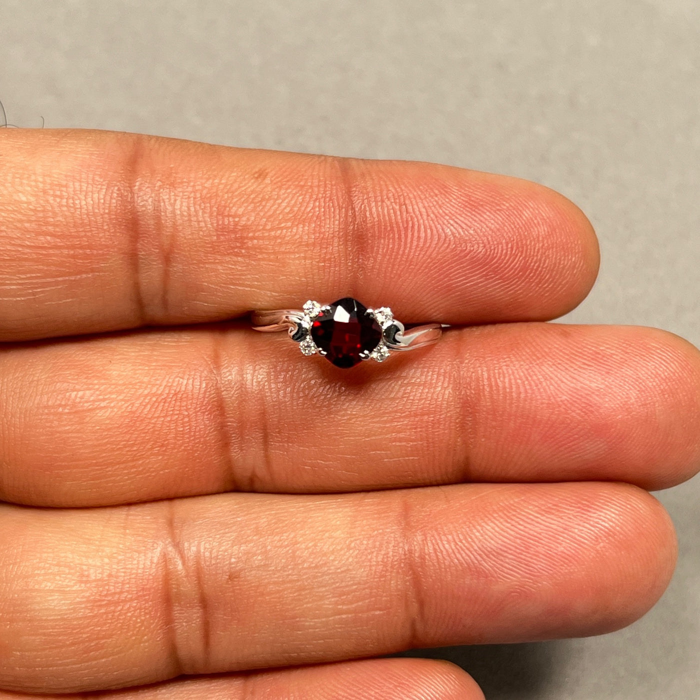 Perfect as a birthday gift, promise ring, or elegant statement piece, this garnet and diamond ring is designed to impress.