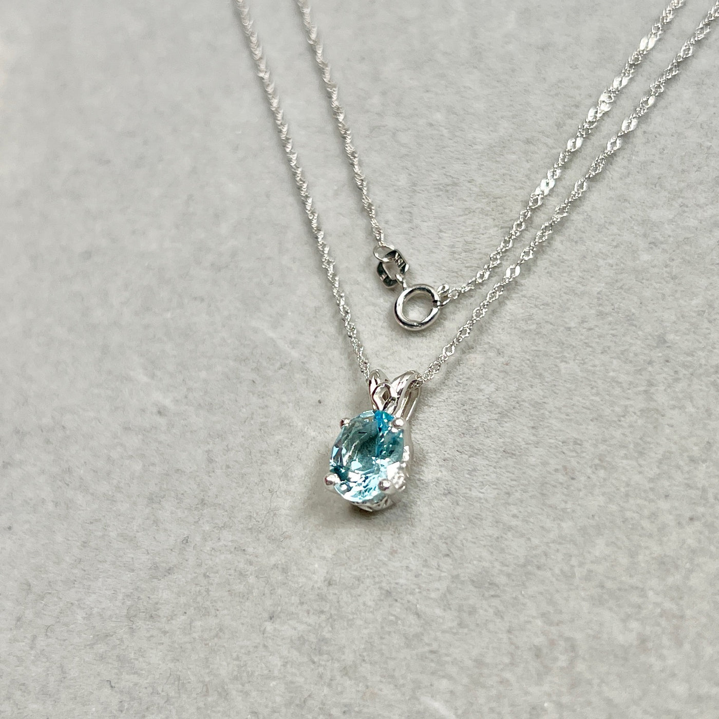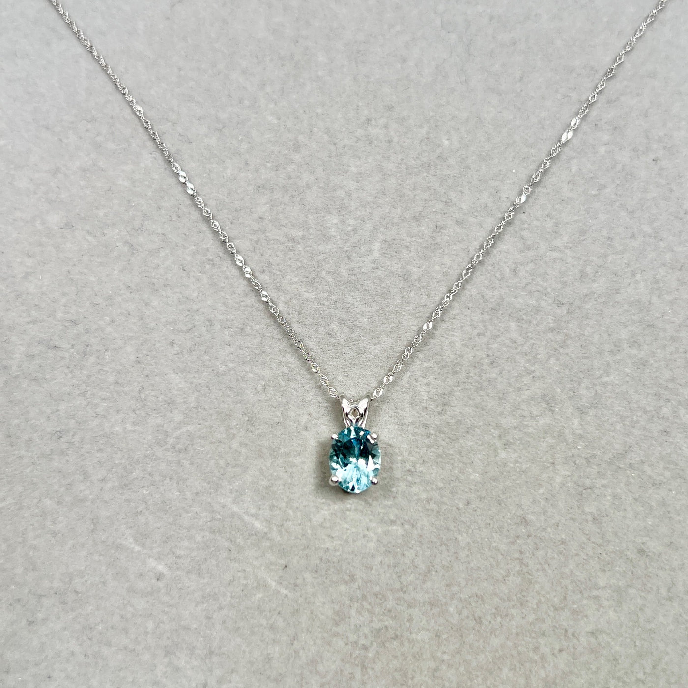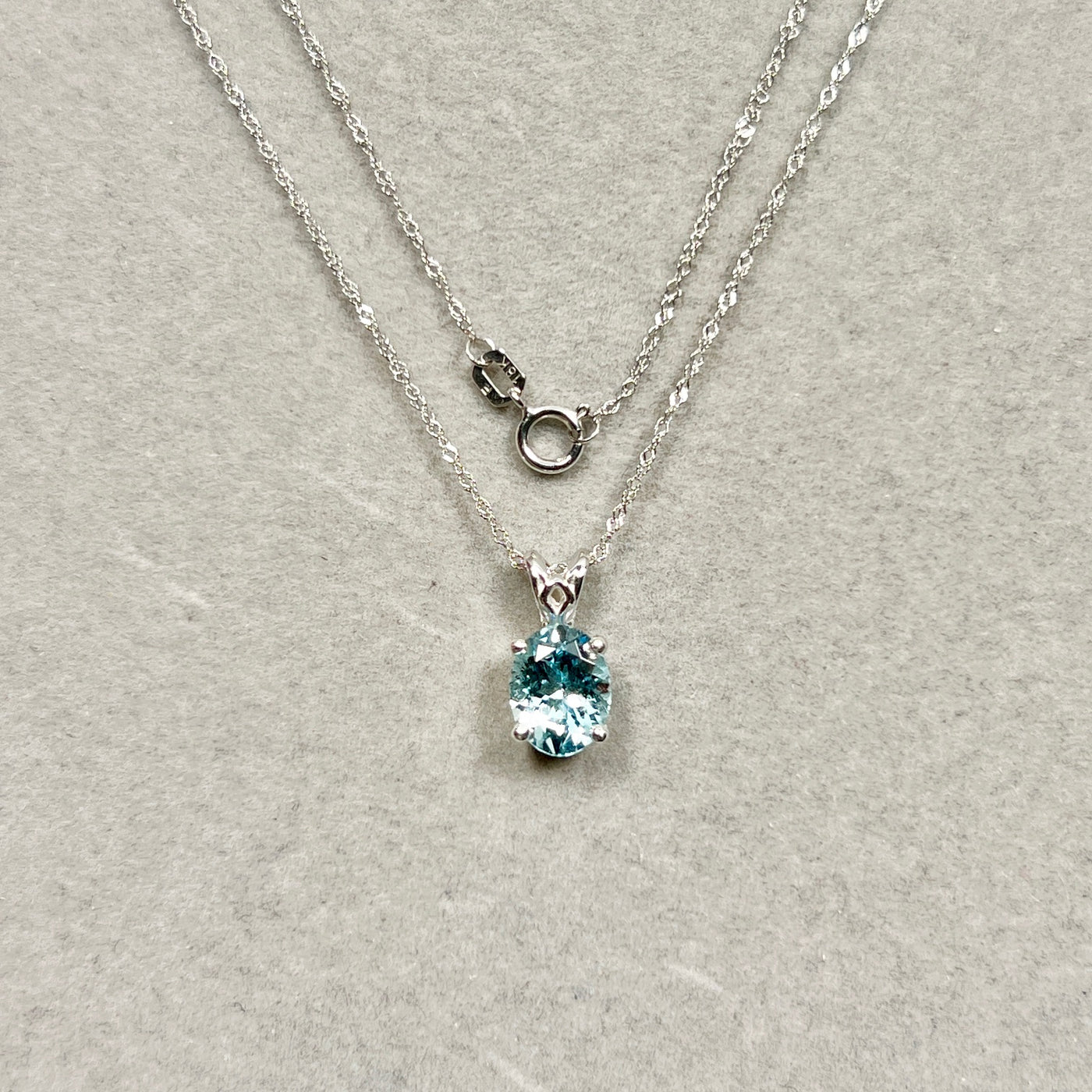 1.75 Cts AAA Oval Aquamarine Solitaire Scroll Pendant 9x7 mm Platinum – 18” White Gold Chain