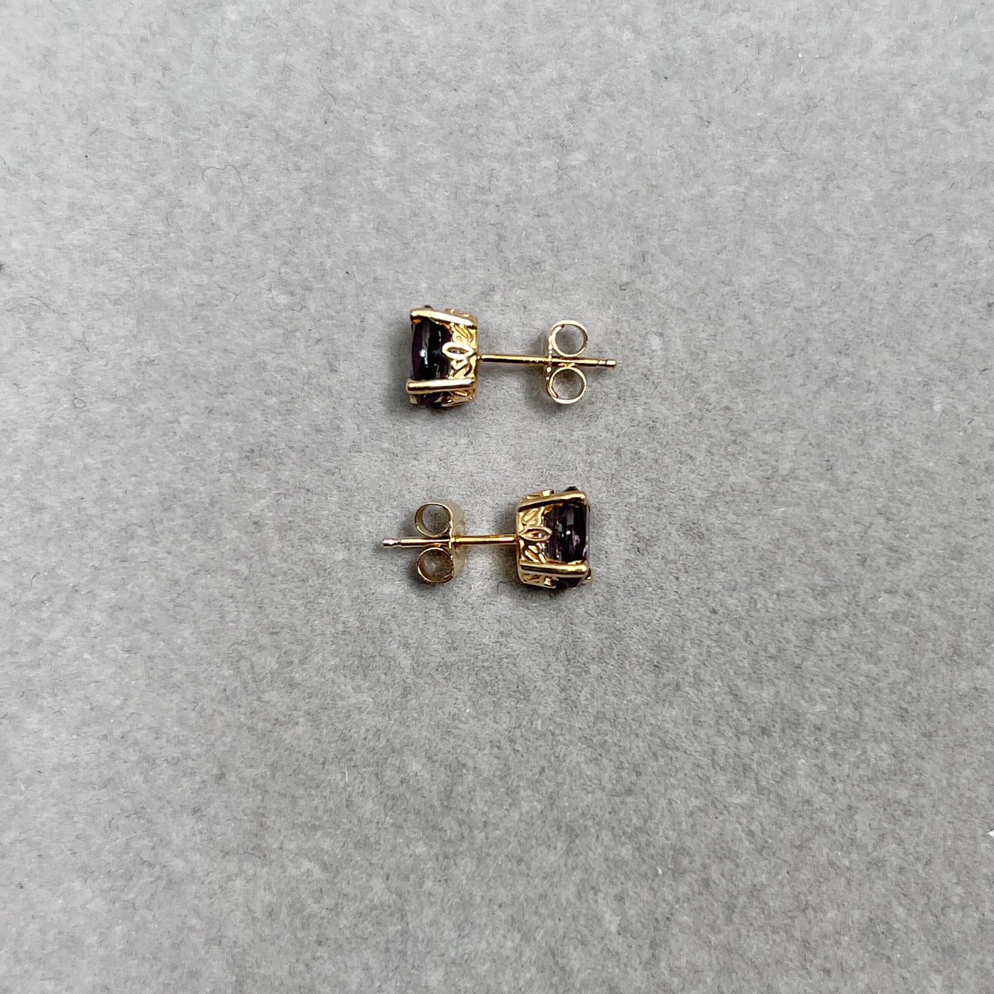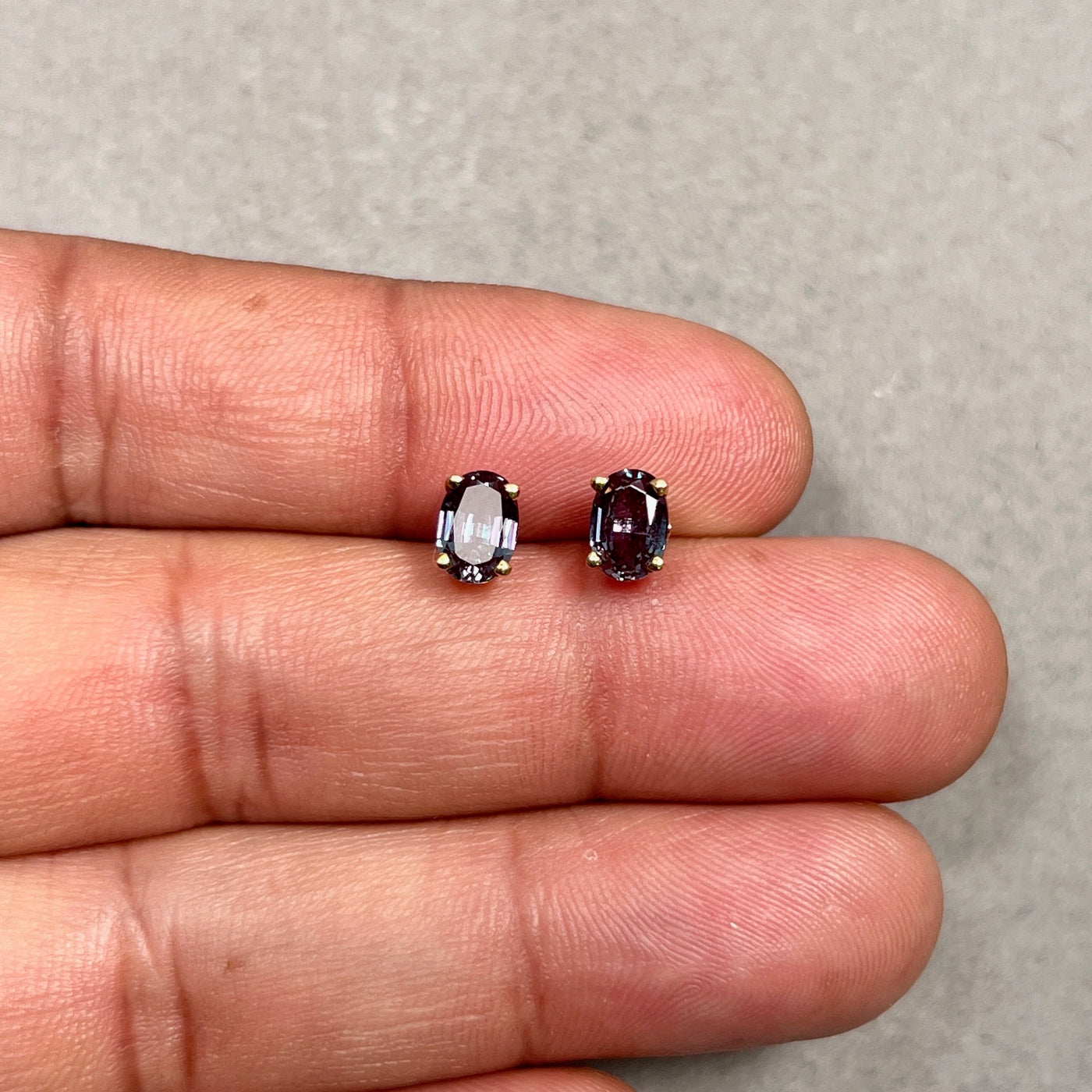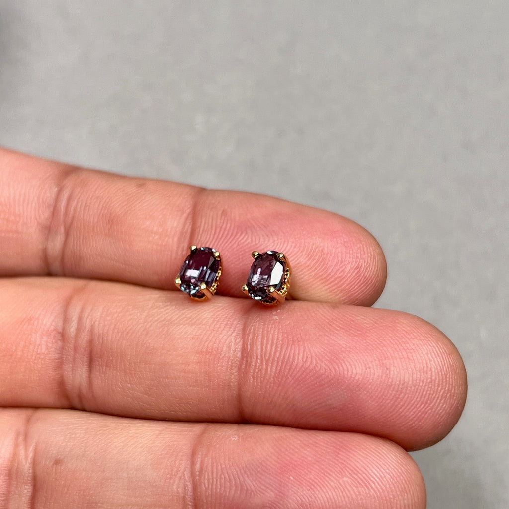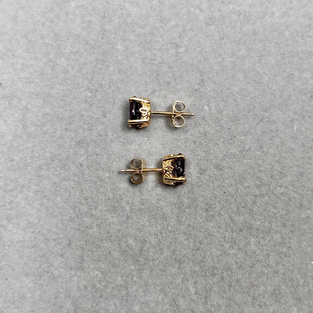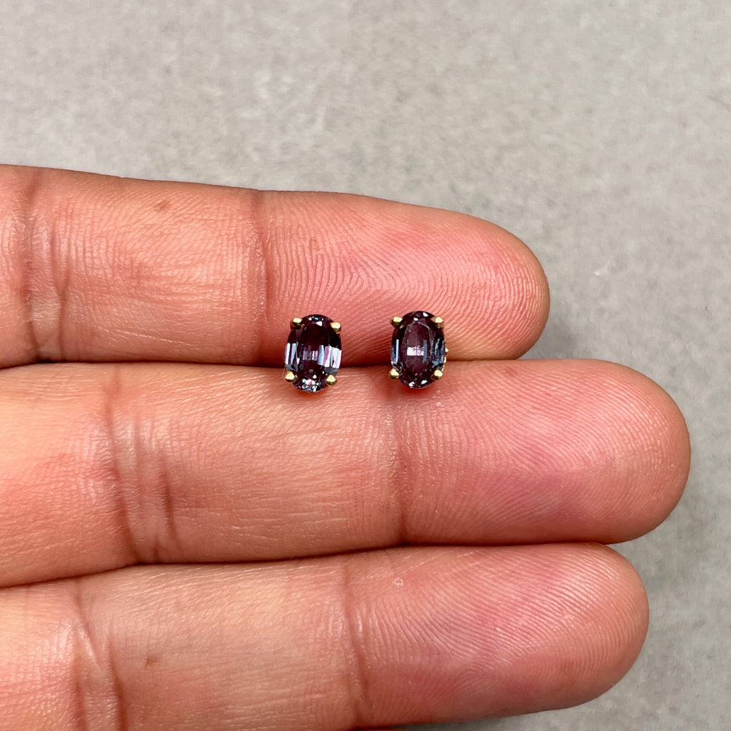 1.89–2.36 Ct AAA Oval Lab-Created Alexandrite Scroll Stud Earrings in 14K Yellow Gold (7x5 mm)
