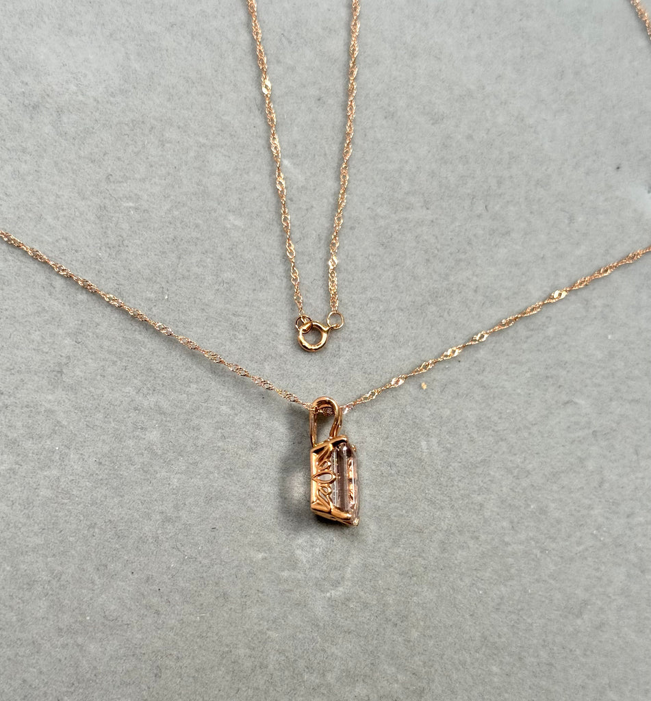 14K Pink Gold Morganite Pendant – 2.65-3.23 Ct 10x8mm AAA Emerald-Cut Solitaire Scroll Necklace – Genuine Peach Pink Gemstone Jewelry Gift