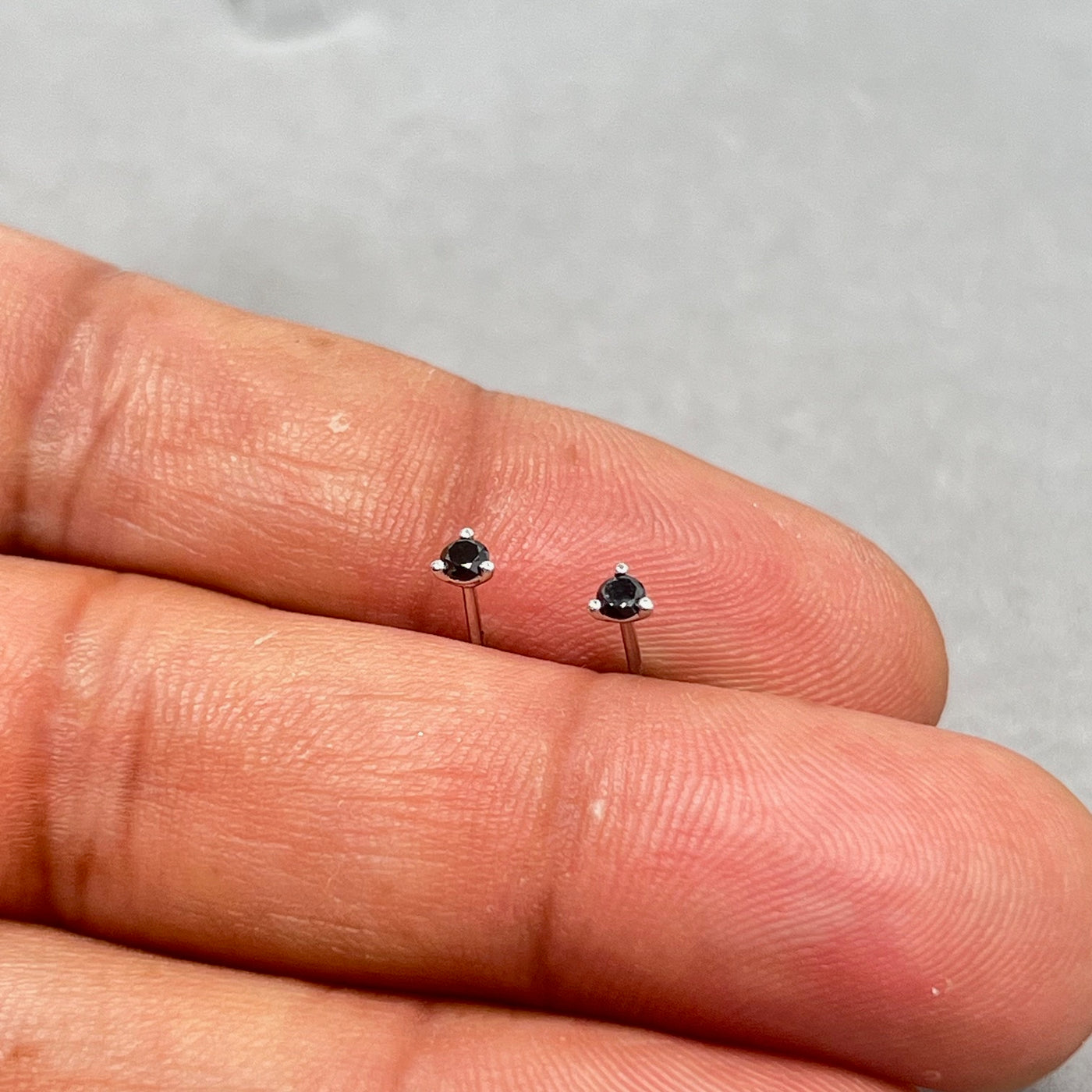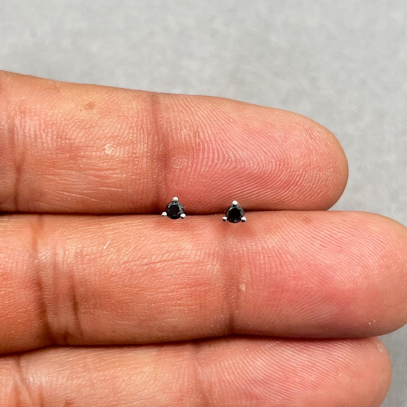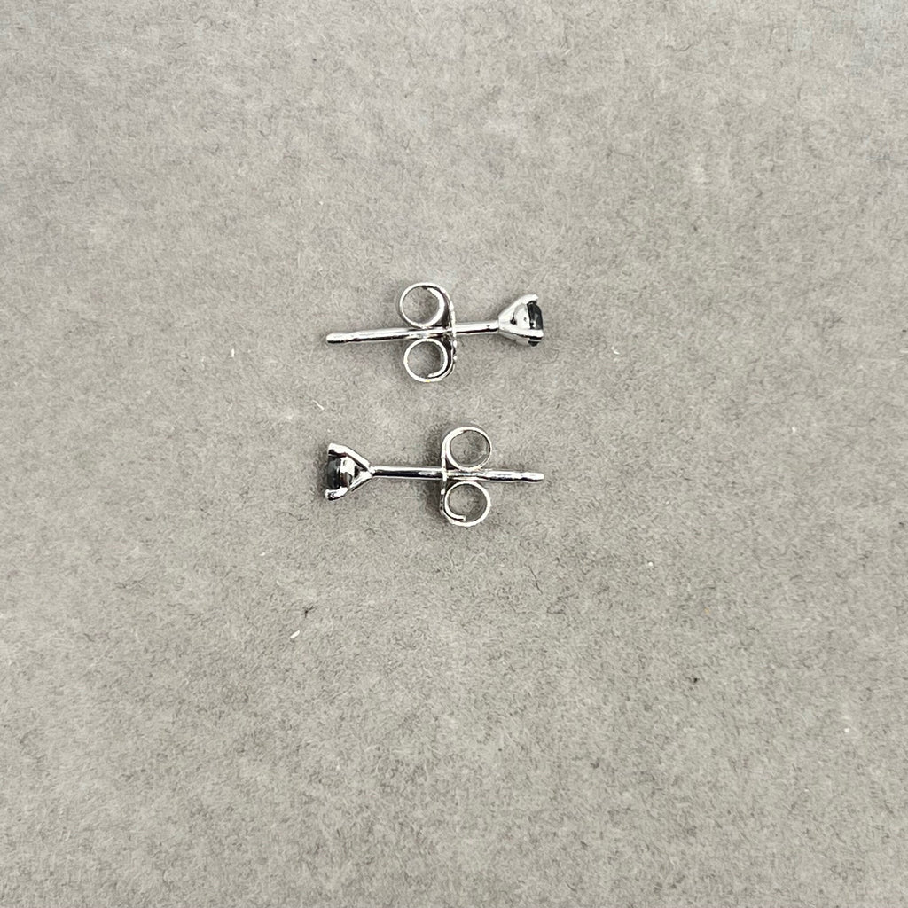 14K White Gold AA Round Black Diamond Stud Earrings for women 2.5–3.0 mm Three Prong Push Back Design