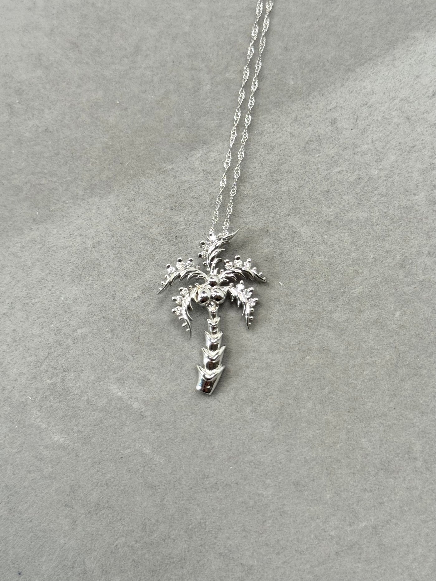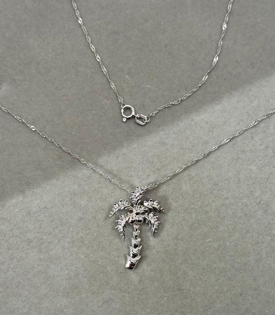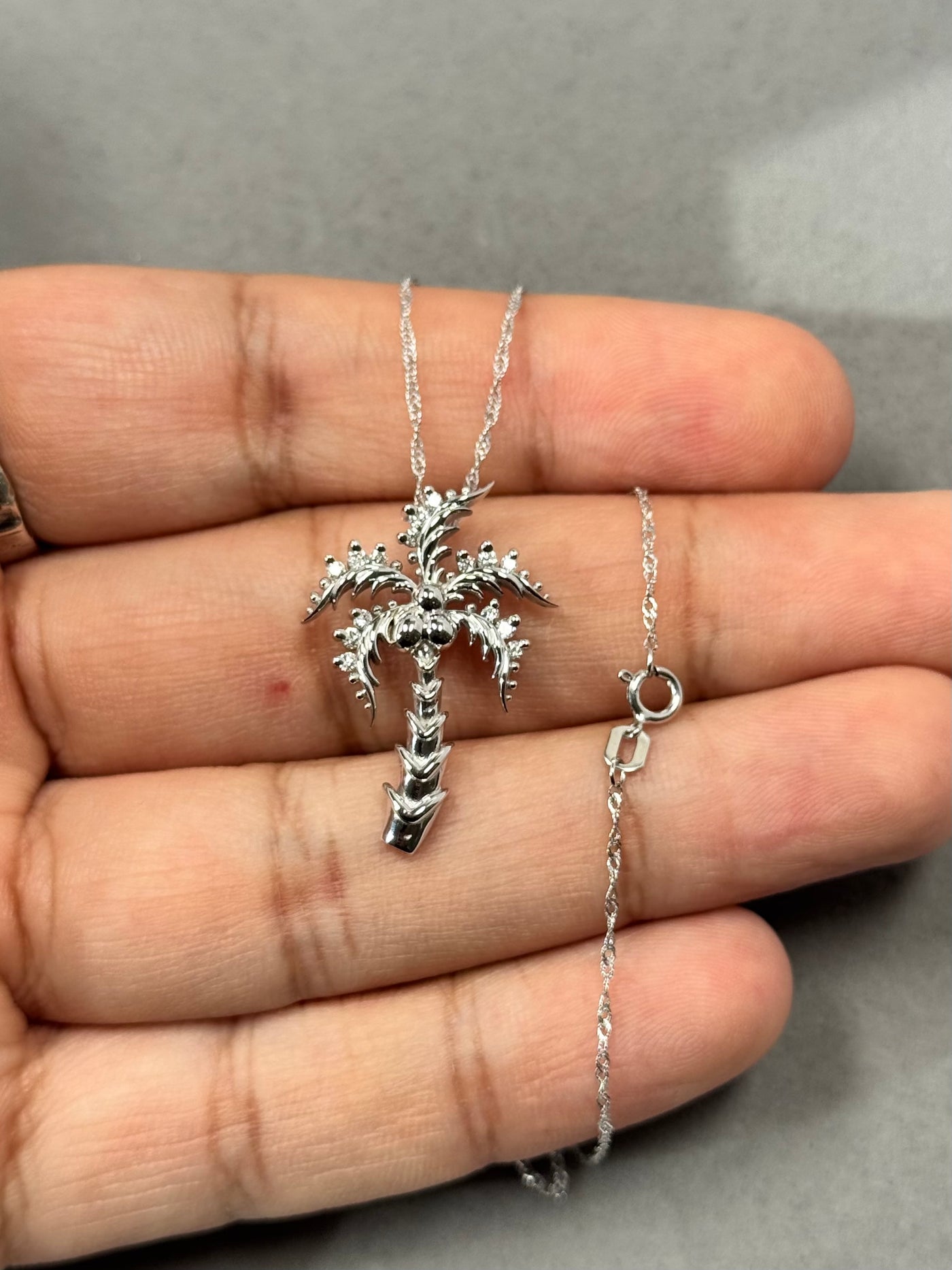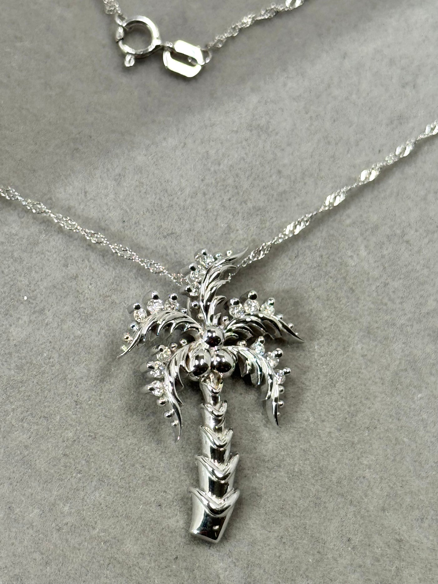 14K White Gold Diamond Palm Tree Pendant with SI2 I1 Round Diamonds 0.12–0.17 Cts Necklace for Women