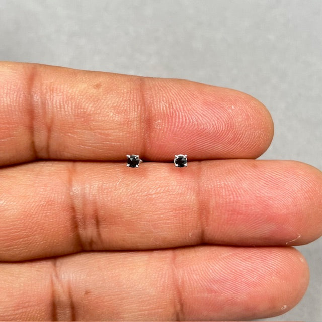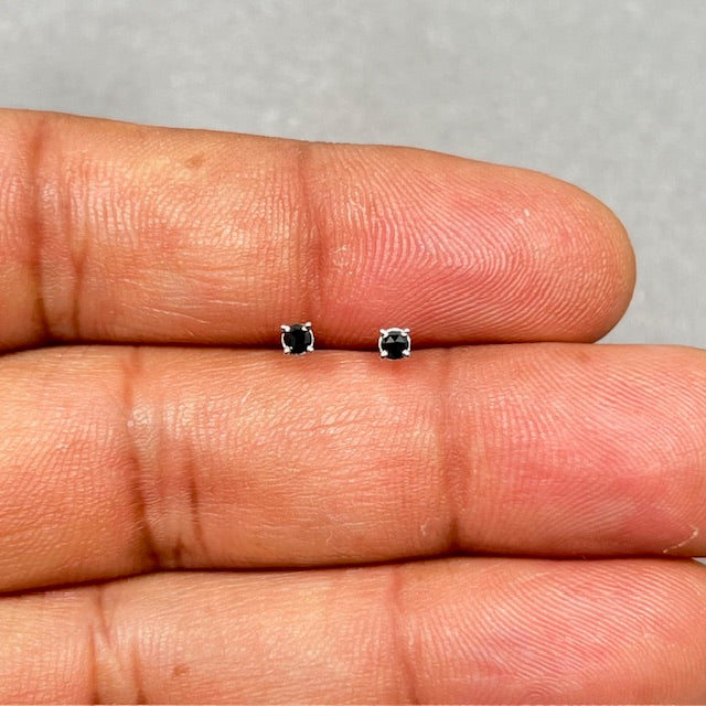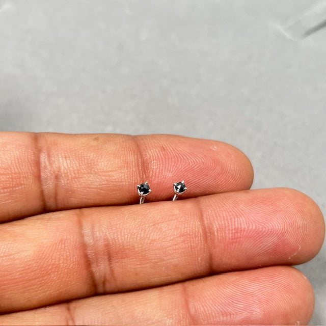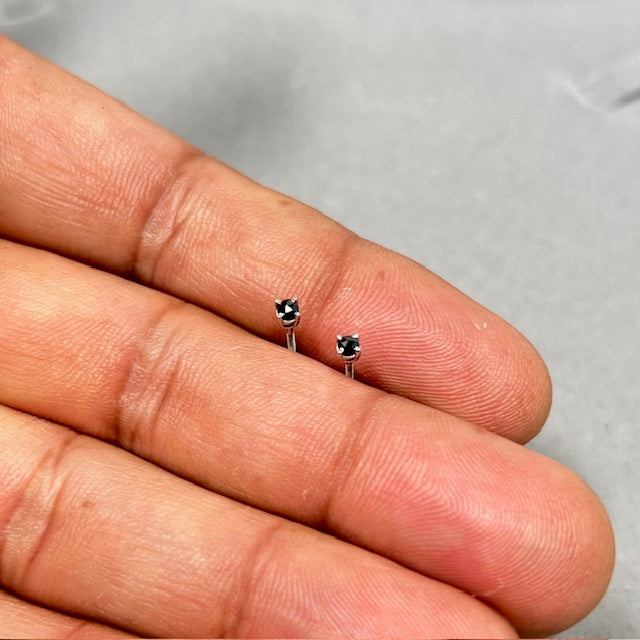 14K White Gold Rose Cut Black Diamond Stud Earrings for women AAA Round 2.5–3mm Prong Set