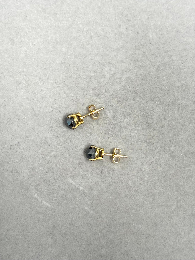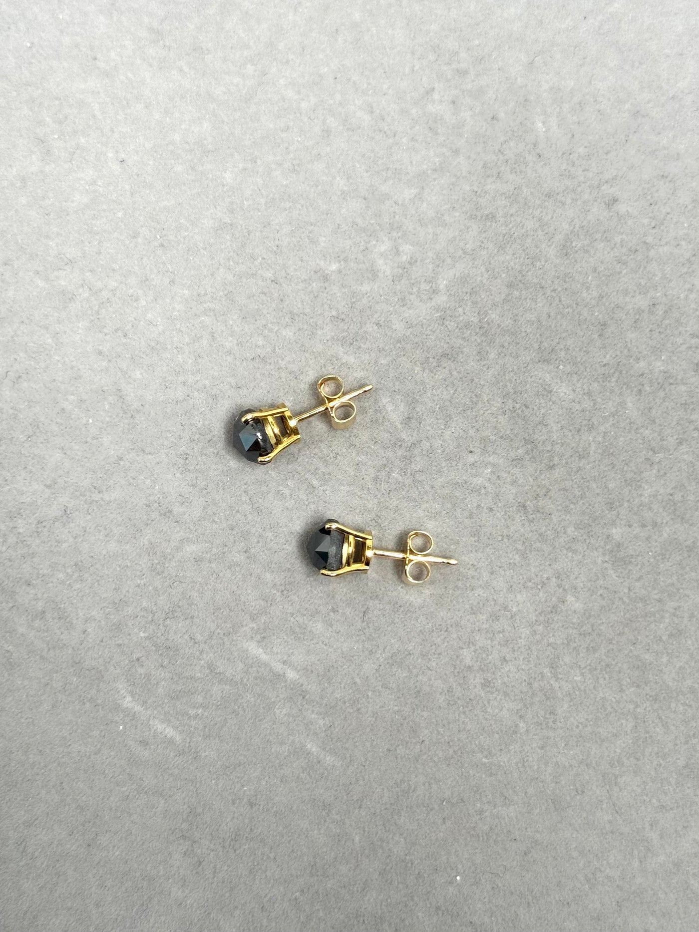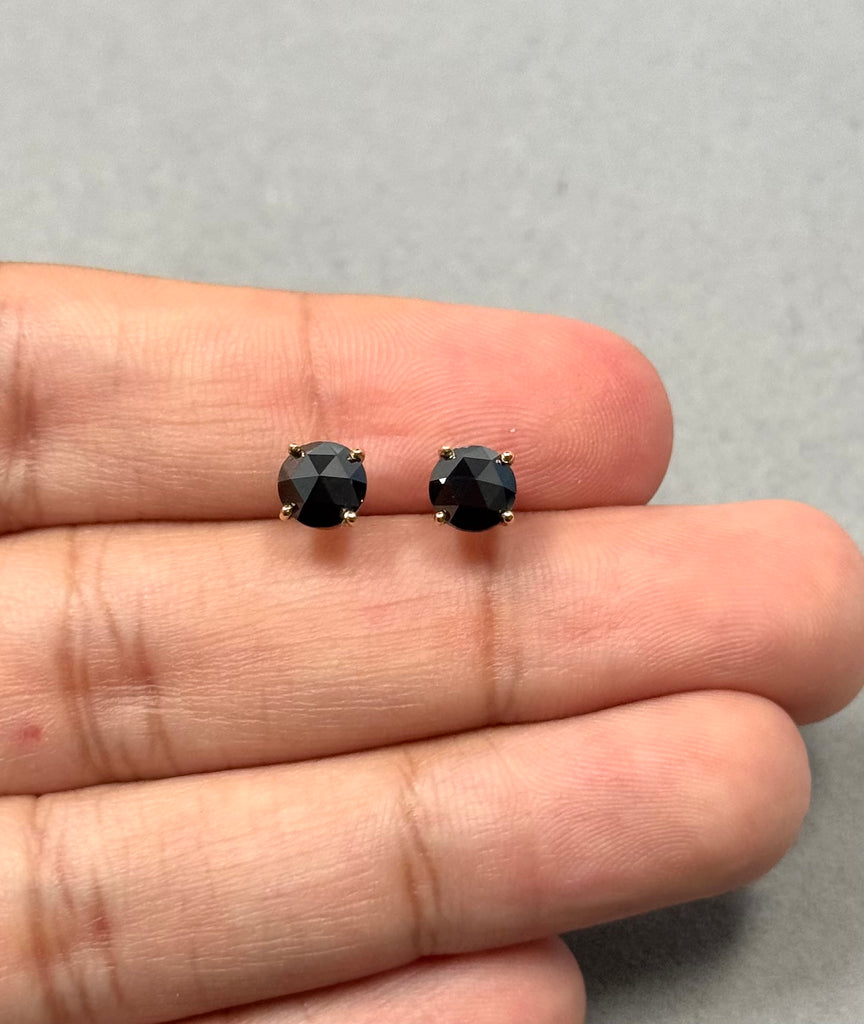 14K Yellow Gold Rose Cut Black Diamond Stud Earrings 1.95–2.44 Cts 5.70–7.13 mm EGL USA Certified for Women