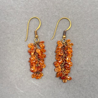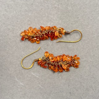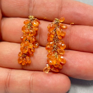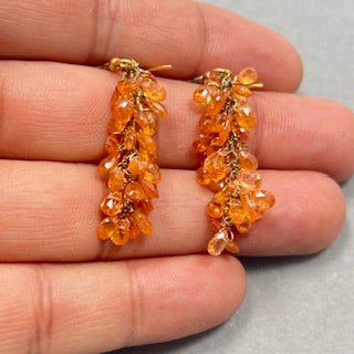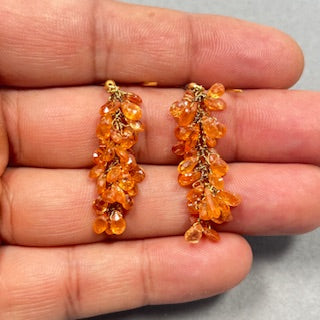 18K Gold Mandarin Garnet Briolette Drop Earrings