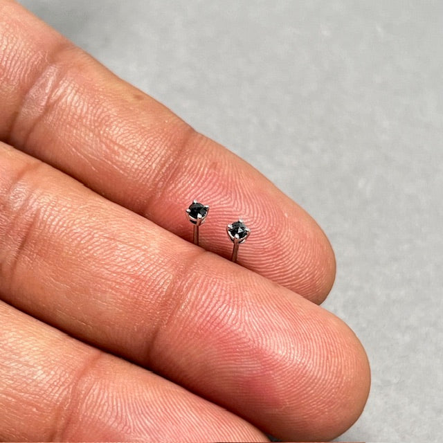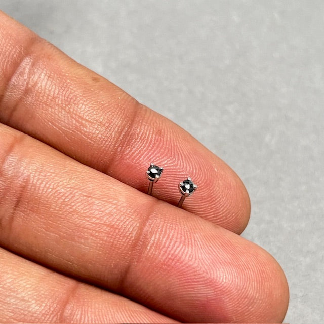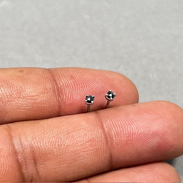 18K White Gold Rose Cut Black Diamond Stud Earrings for women, AAA Round 2.5–3 mm Prong Set Minimal Fine Jewelry
