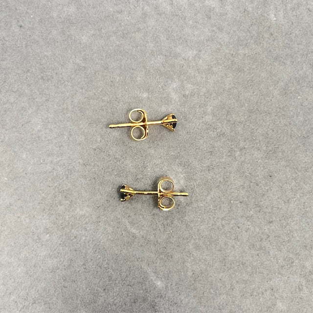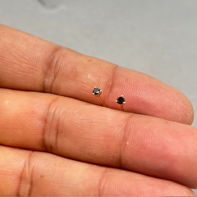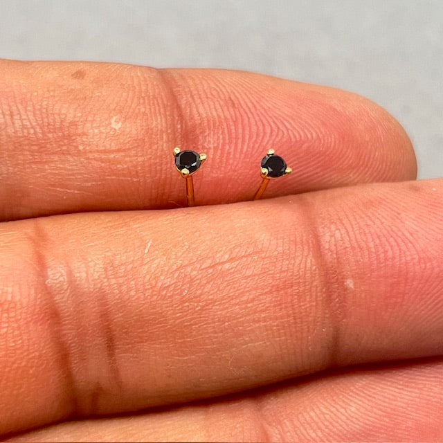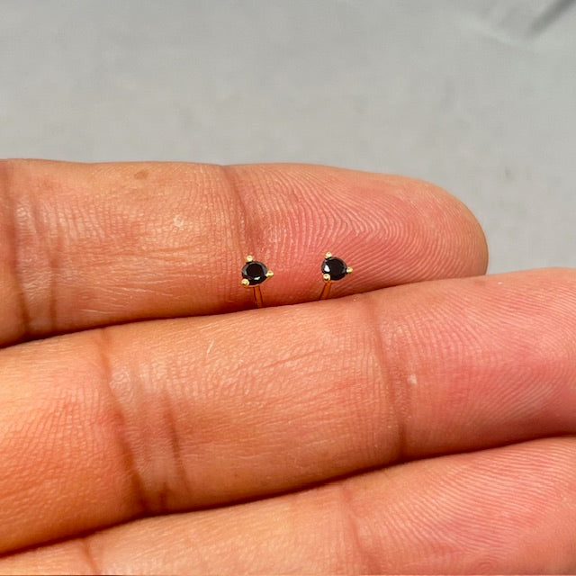 18K Yellow Gold Black Diamond Stud Earrings for women, AAA Round 2.5–3.0 mm Three Prong Solitaire Design