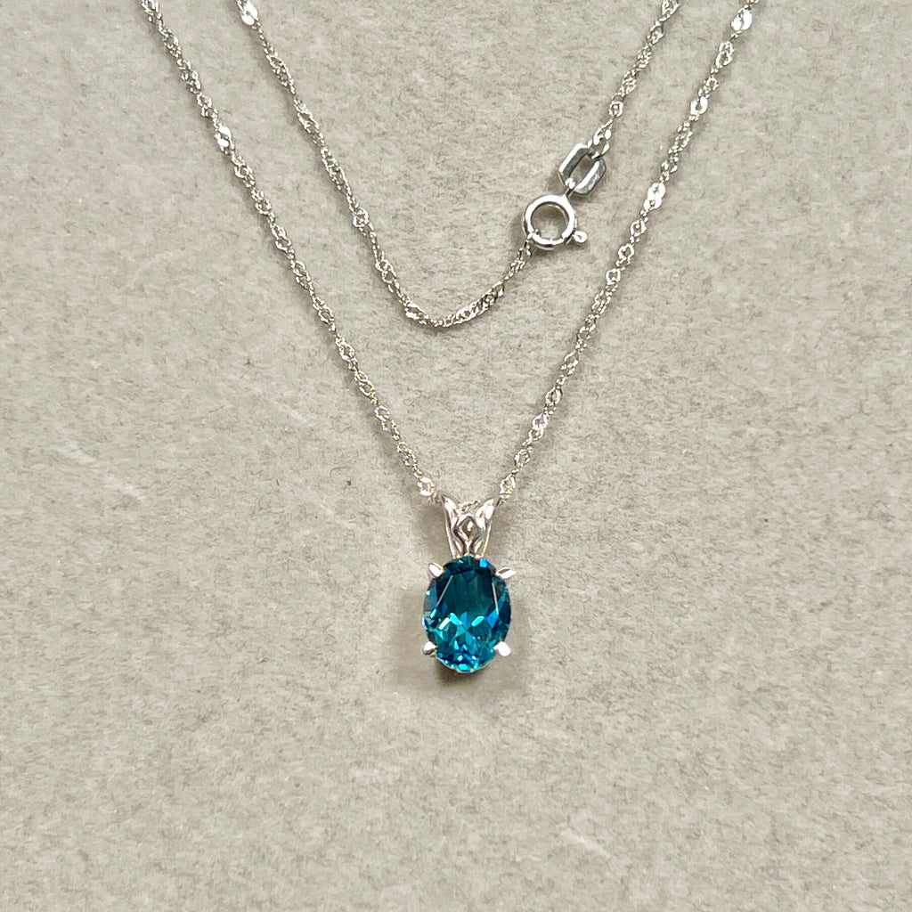 2.03 Cts Platinum Oval London Blue Topaz Scroll Pendant for Women, AAA 9x7 mm Natural Gemstone