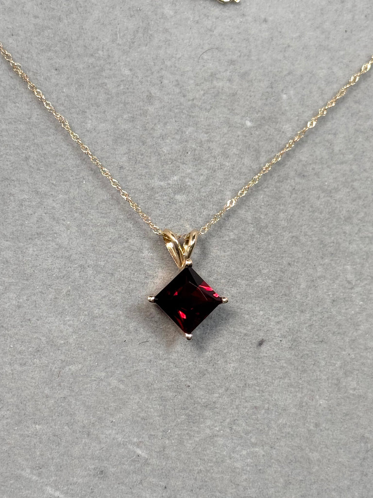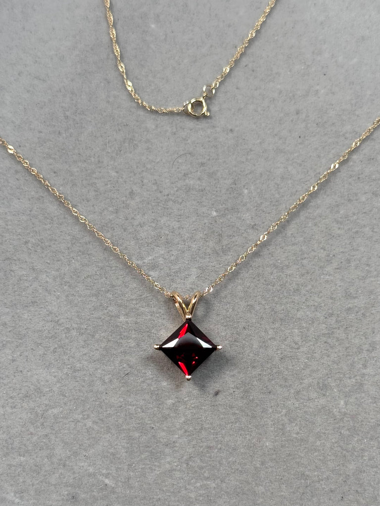2.35–2.90 Ct Garnet Solitaire Pendant 14K Yellow Gold | Princess Cut Red Garnet Necklace | January Birthstone Jewelry