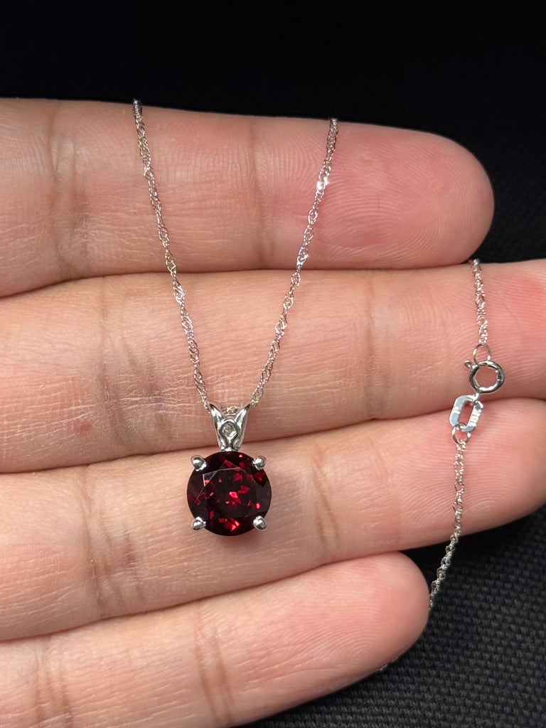 3.60–4.55 Ct Round Garnet Solitaire Pendant Platinum | 10mm AAA Dark Red Garnet Necklace | January Birthstone Luxury