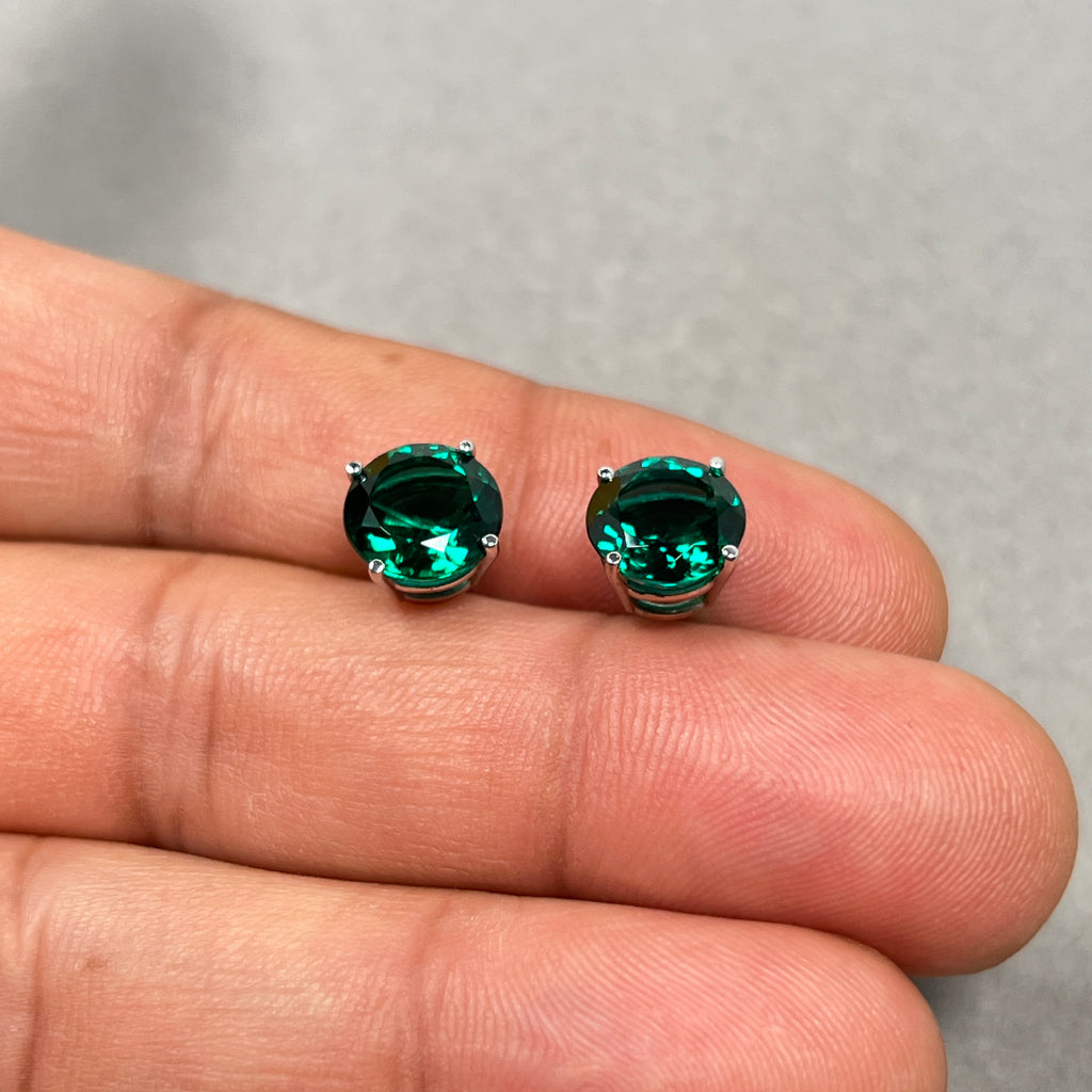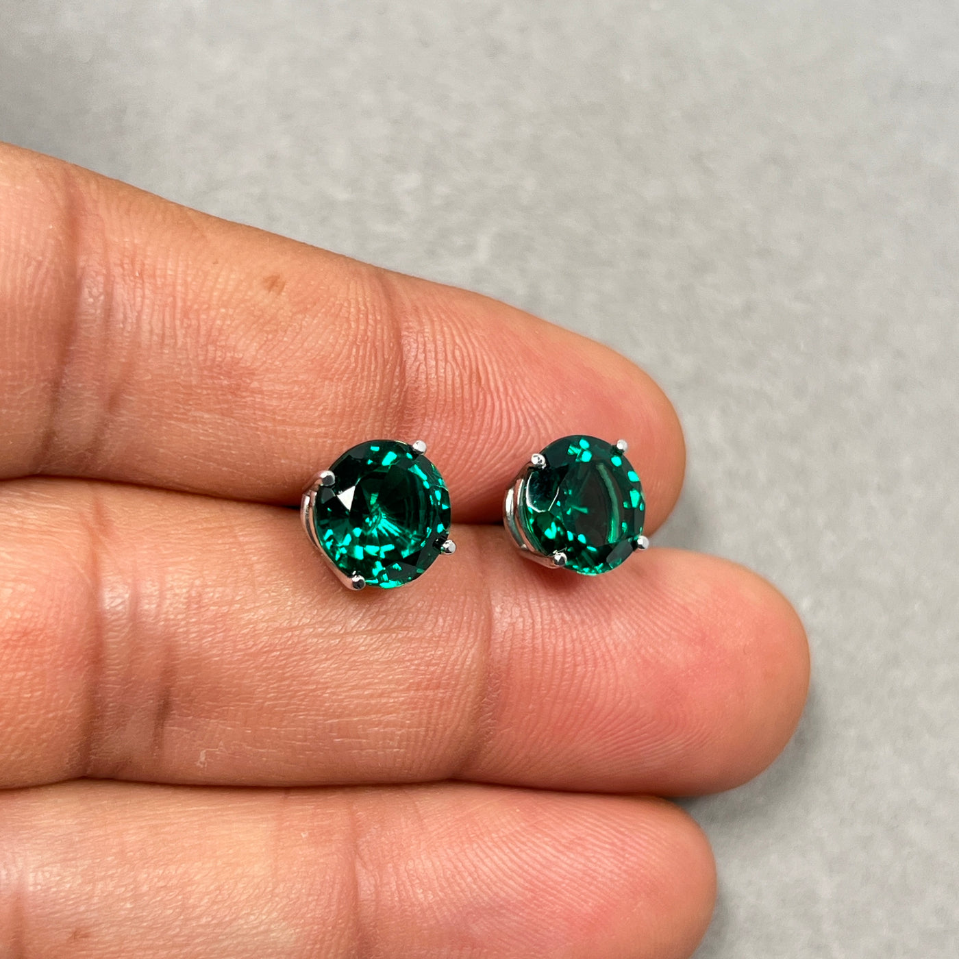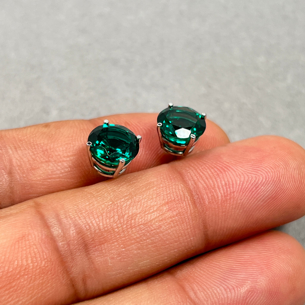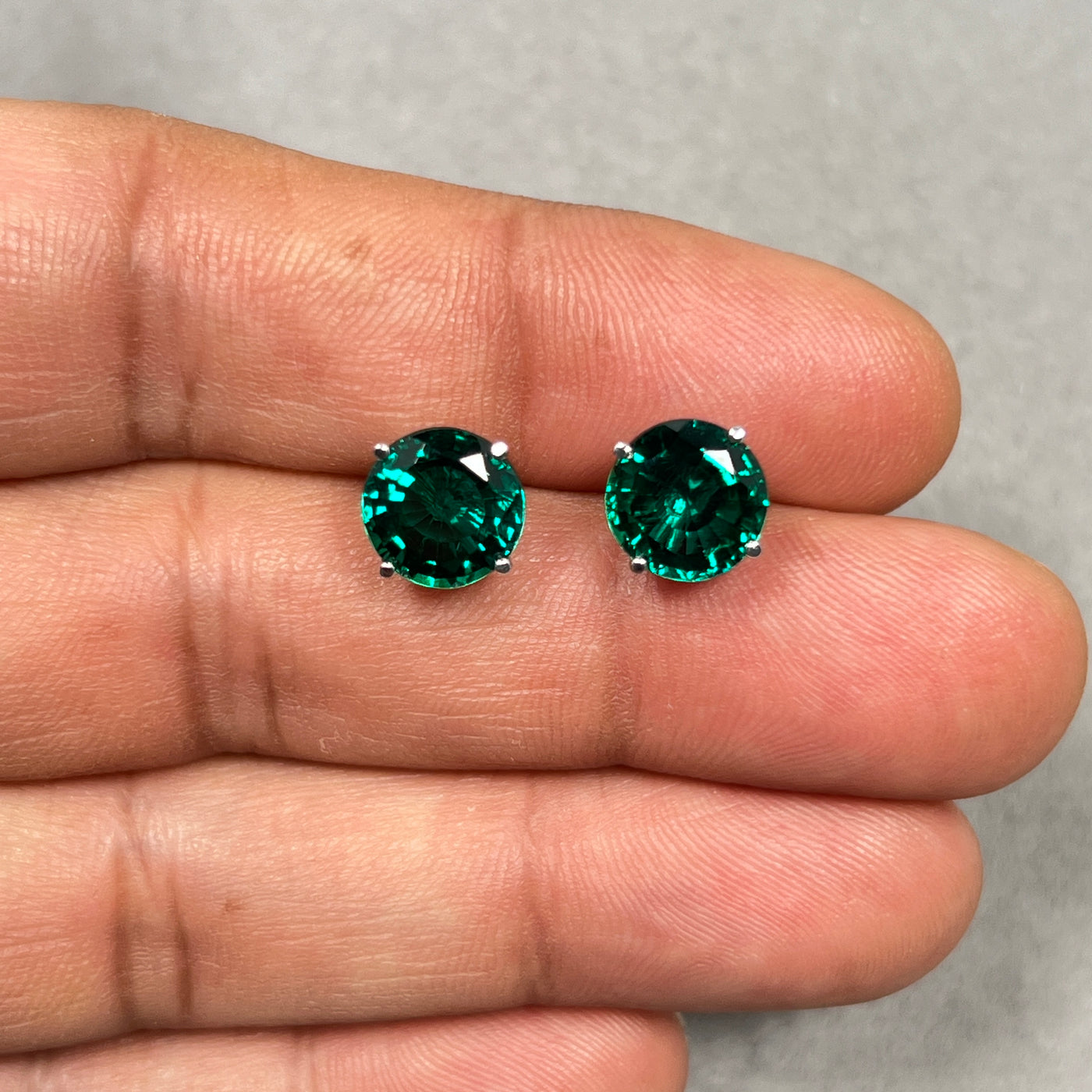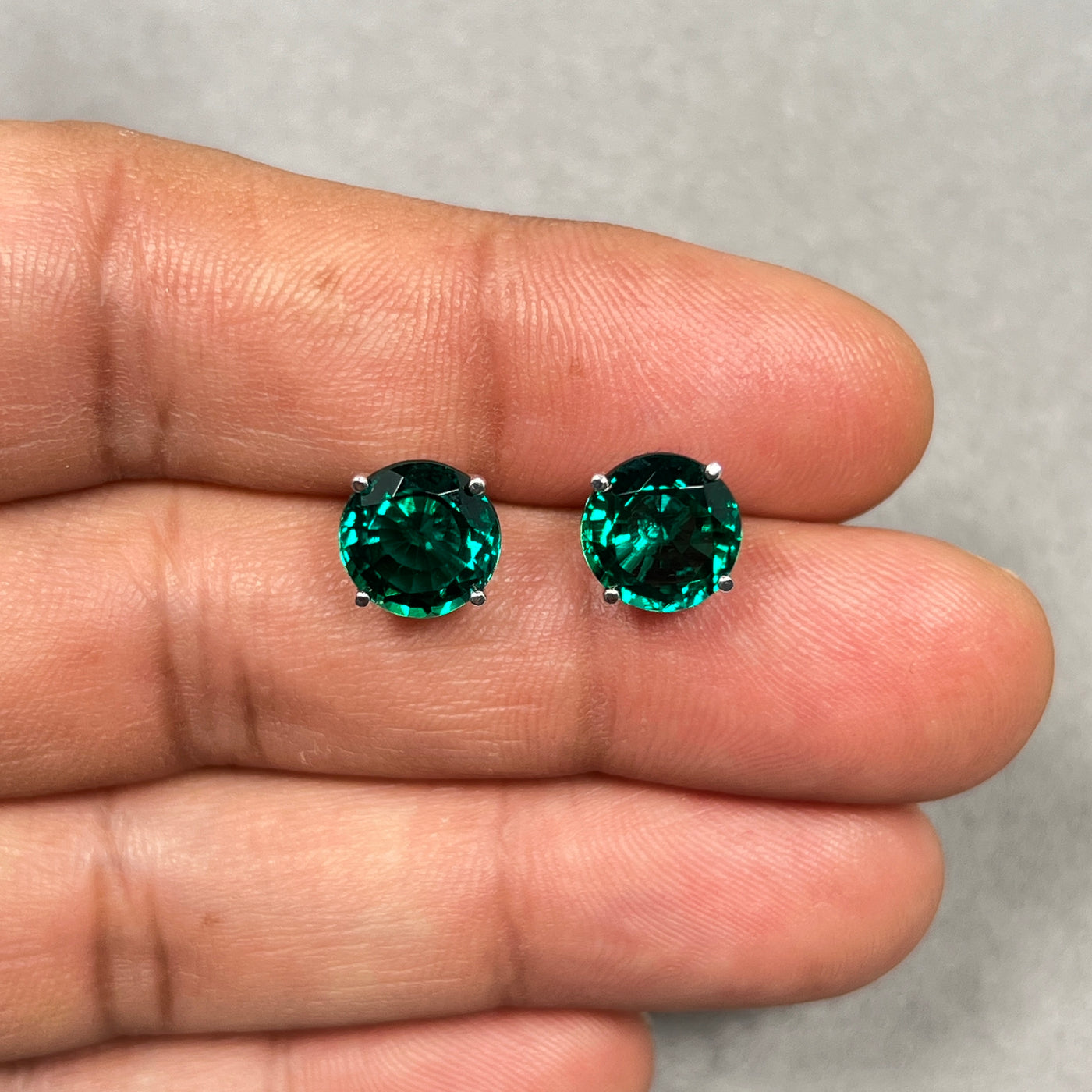 4.80 Cts 9mm Lab-Created Emerald Stud Earrings in 14K White Gold | AAA Lab Green Emerald Earrings, Elegant Lab-Grown Emerald Jewelry